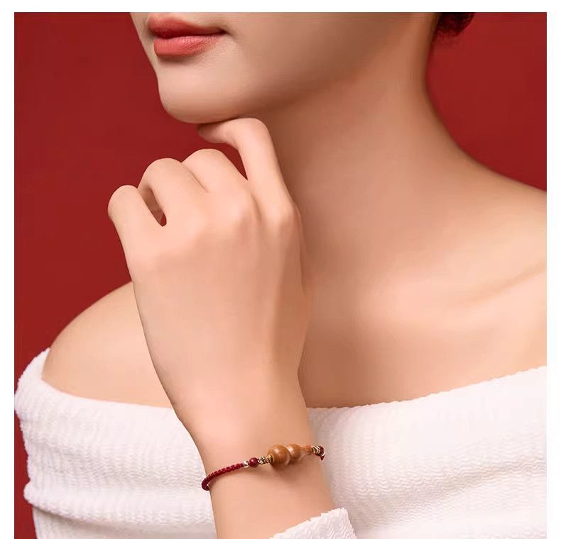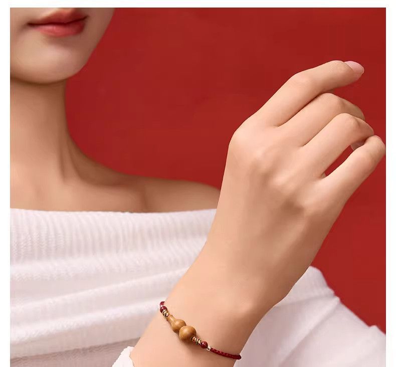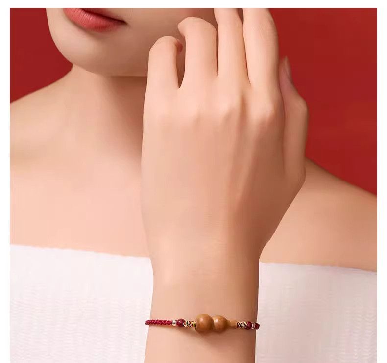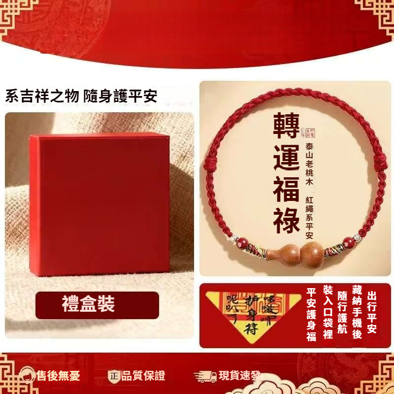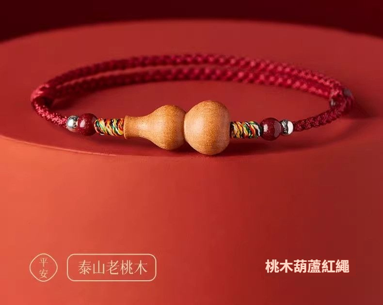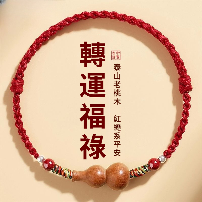 老桃木雕刻葫蘆手繩本命年平安轉運紅繩手串男女