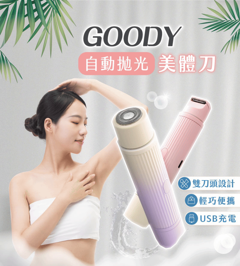 【GOODY自動拋光美體刀 國慶限時五折優惠】專為毛女孩設計 一刮即淨 無痛除毛 不用花大錢也能享受夏日的【無毛自由】