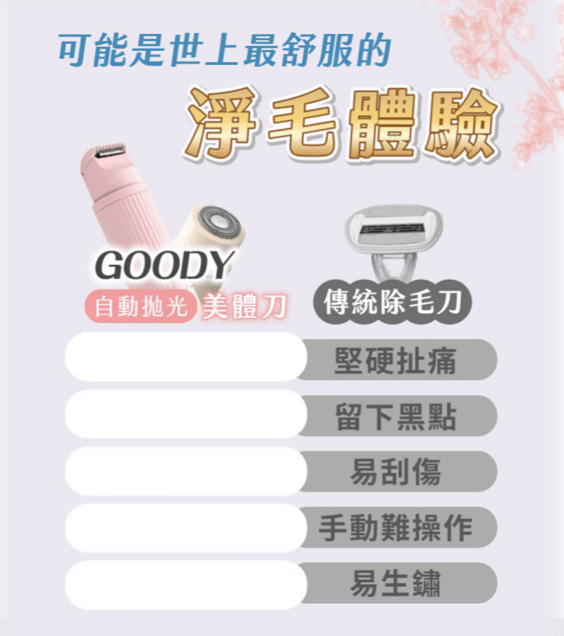 第 1 件 : 【GOODY自動拋光美體刀 國慶限時五折優惠】專為毛女孩設計 一刮即淨 無痛除毛 不用花大錢也能享受夏日的【無毛自由】