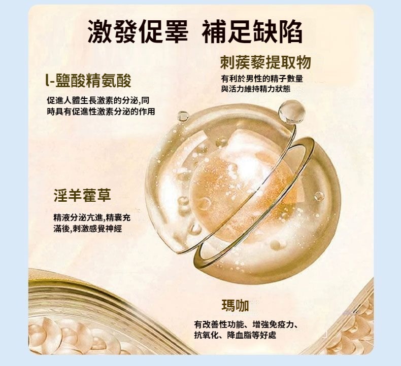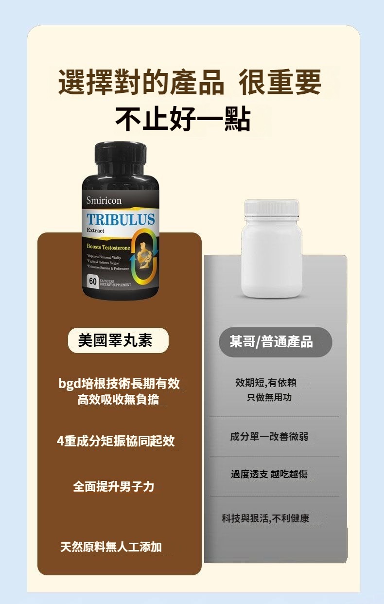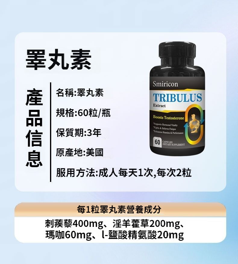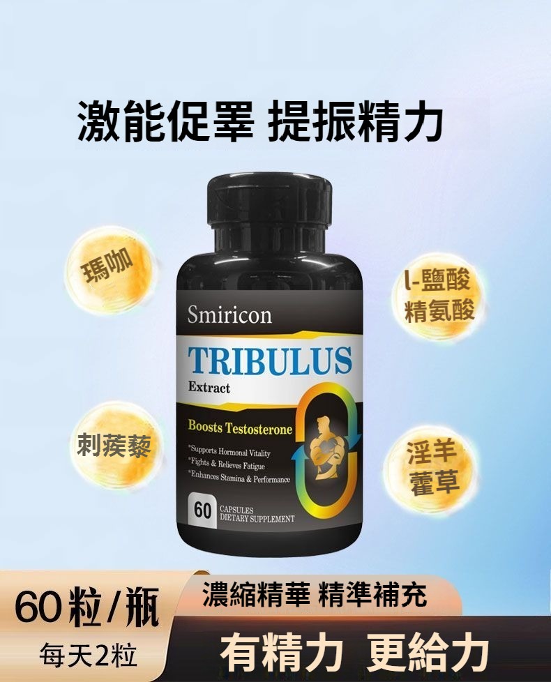美國原裝進口刺蒺藜睪丸素膠囊、改善男性機能與生殖健康 ,支持性欲提升,改善勃起相關微循環;輔助提高精子數量與活力,維持睪酮/雌激素平衡,緩解中年男性機能下滑問題。 促睪增肌,提升運動,核心成分刺蒺藜皂苷可刺激黃體生成素(LH)分泌,助力內源性睪酮自然提升,促進肌肉合成、增強力量。美國原裝,品質有保障 :原裝進口,天然草本萃取,成分更安心!