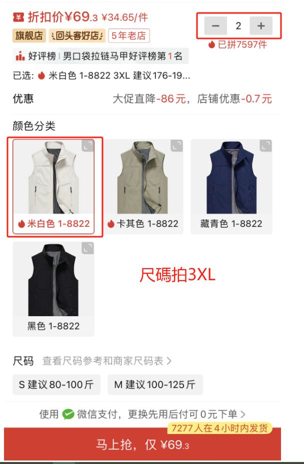 ②米白色馬甲【3XL】 2件https://mobile.yangkeduo.com/goods.html?ps=1KPNvKB4UP