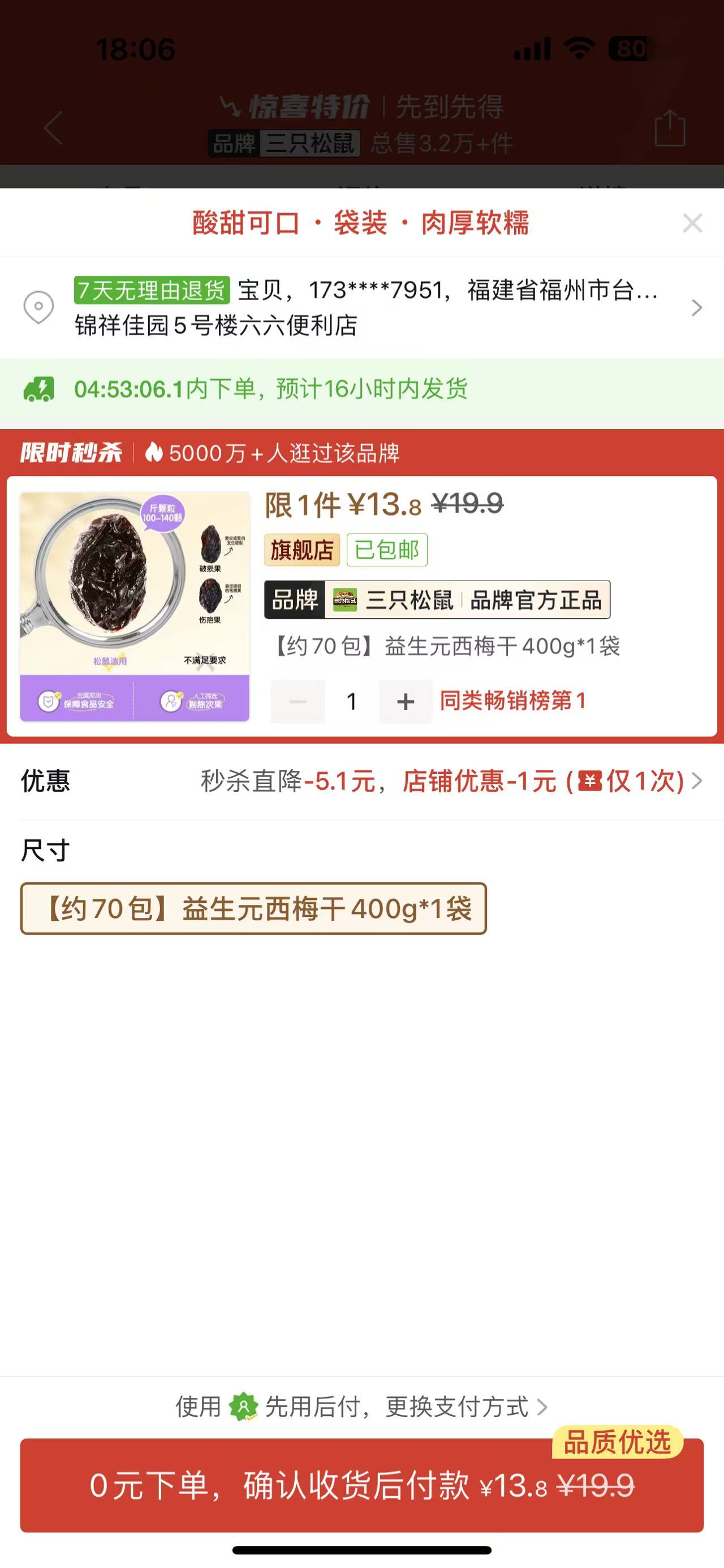 ①固信堂鯊魚軟骨天麻杜仲葉片7入组+②三只松鼠益生元西梅400g*1袋(37.3元)