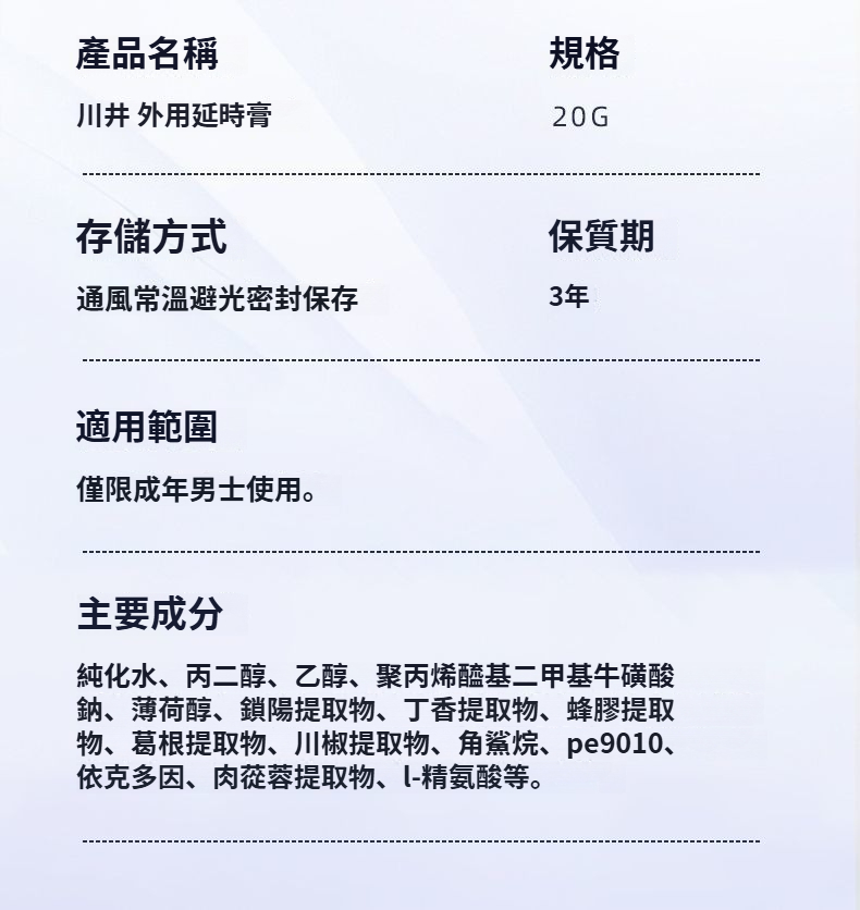 正品日本進口!【健康延時,安全可舔】川井外用延時軟膏,延遲房事,男士塗抹持久凝膠~