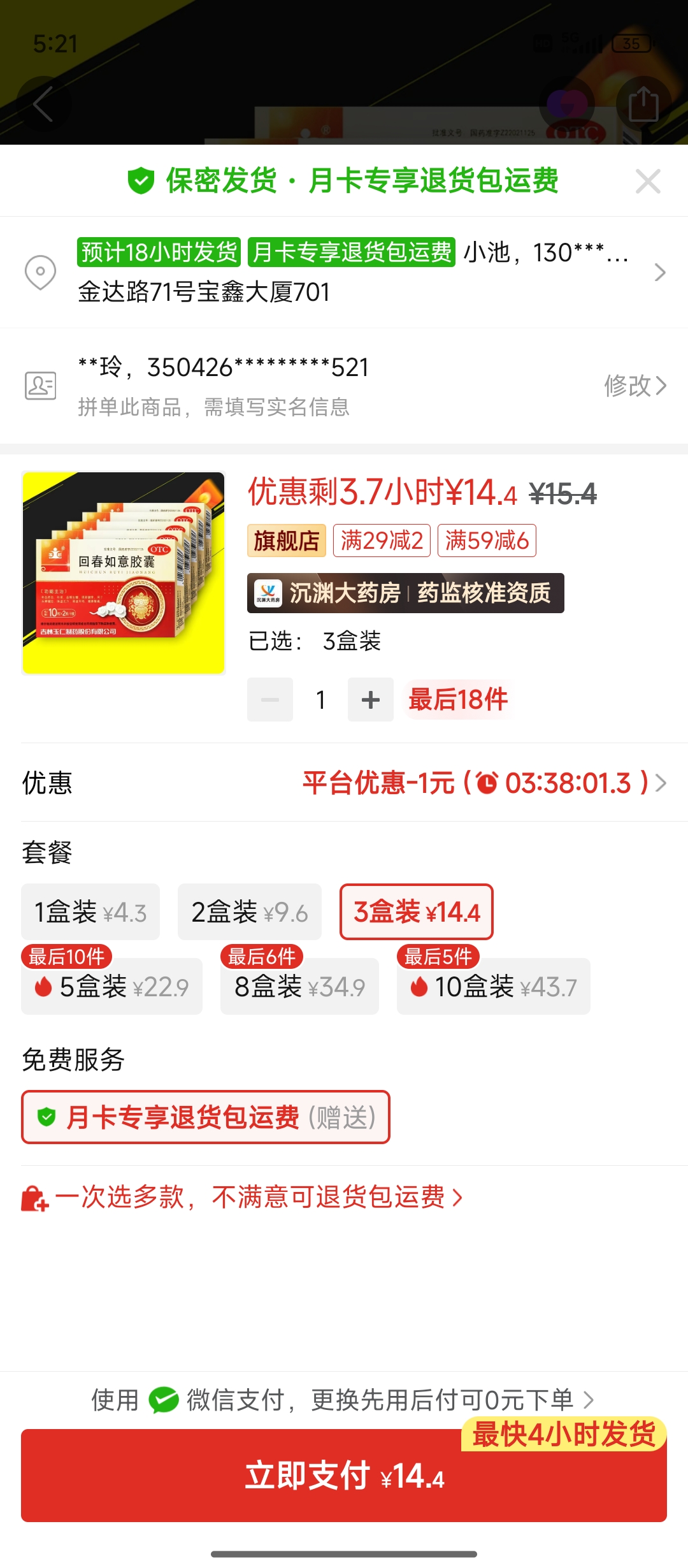 ① 回春如意膠囊 3盒 (14.4¥)