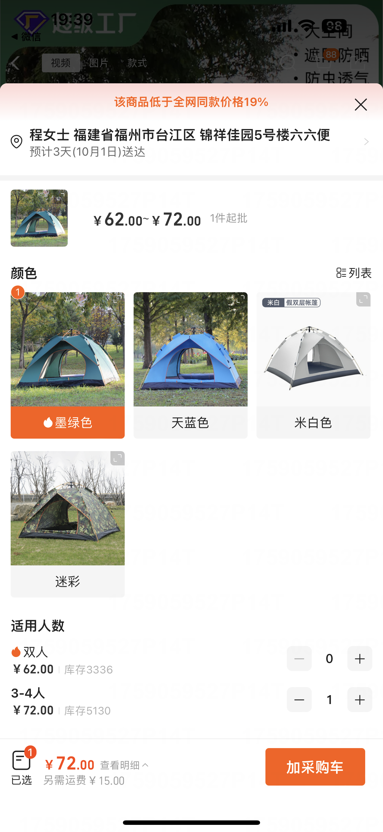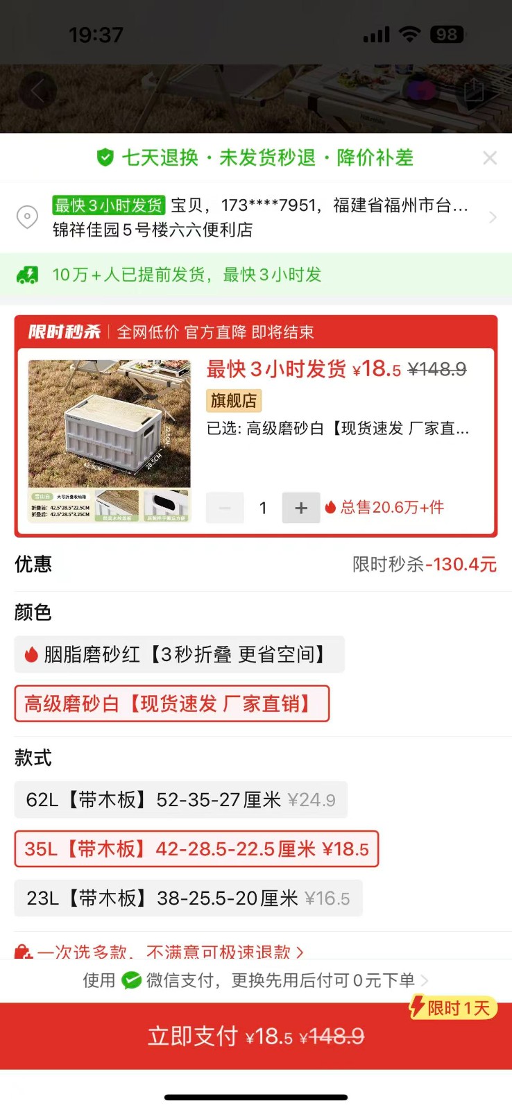 ①外全自動速開帳篷3-4人墨绿色+②8合1手電筒1個+③露營箱1個35L