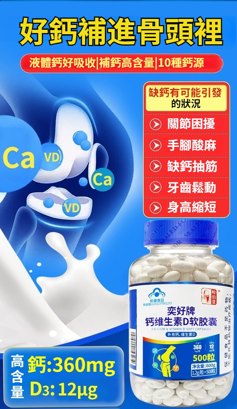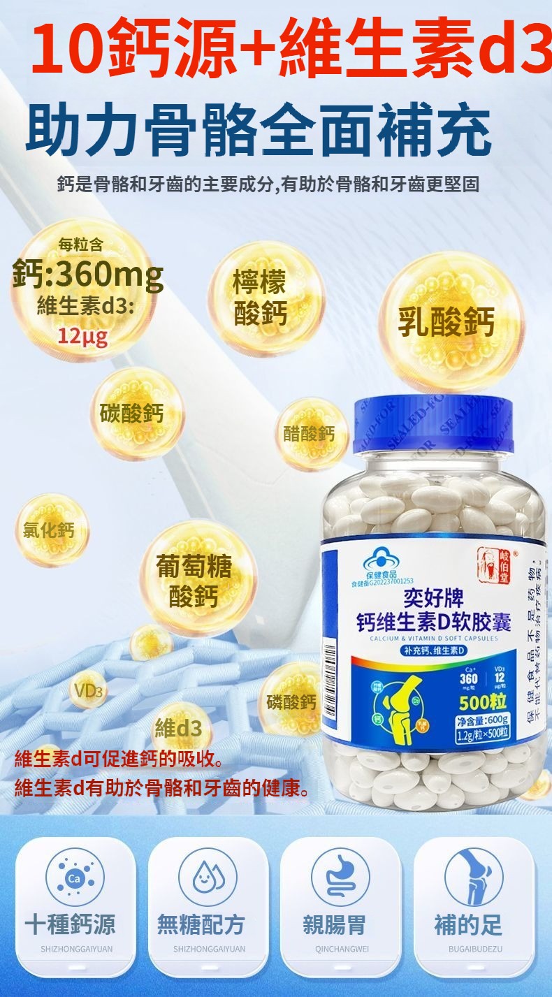 【十鈣合一】無糖!液體鈣維生素d3鈣片中老年補鈣成人高鈣腿抽筋腰腿痛骨質疏鬆 NT$ 1399