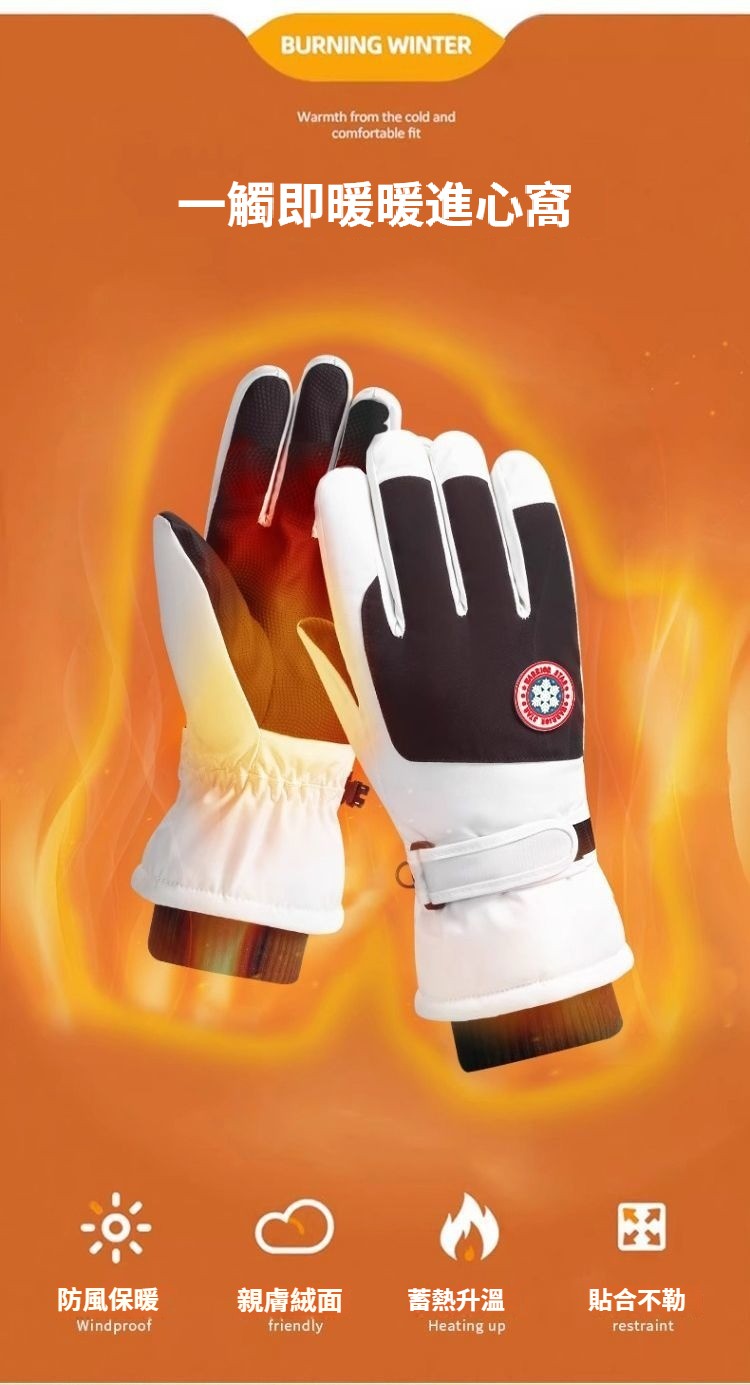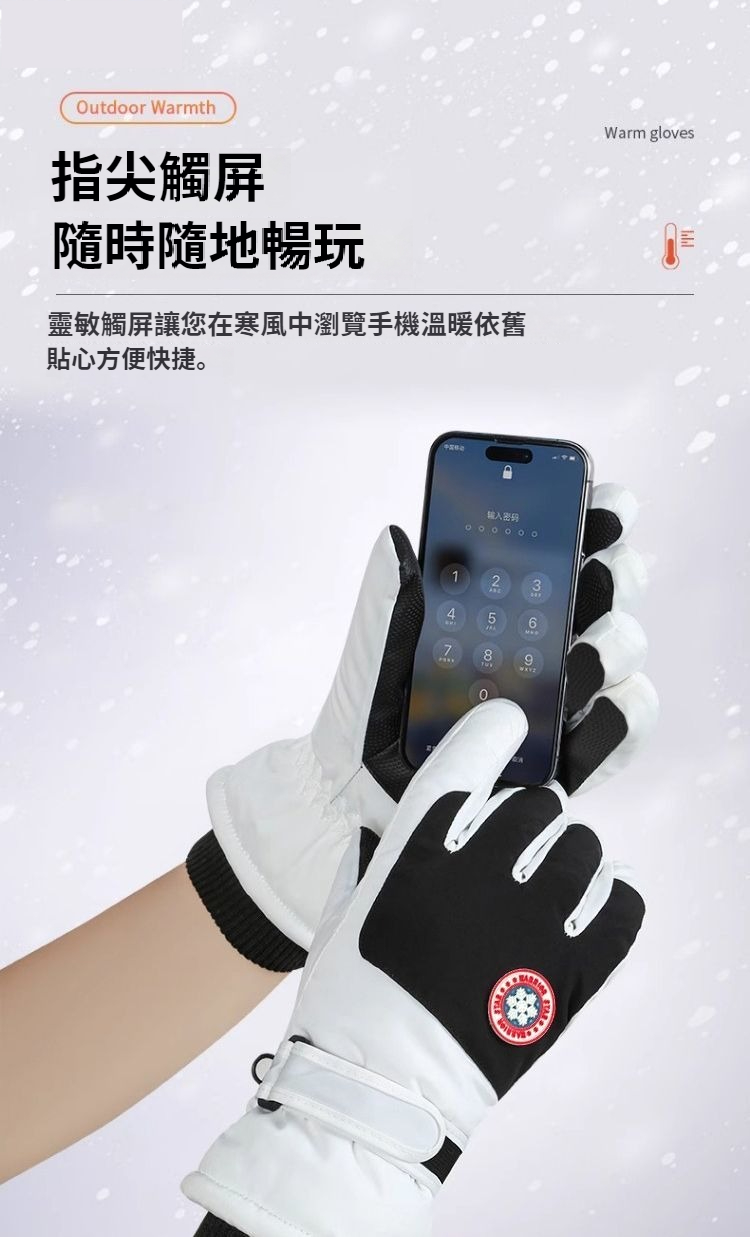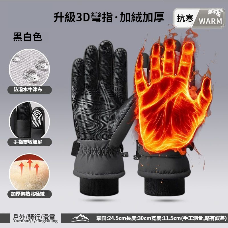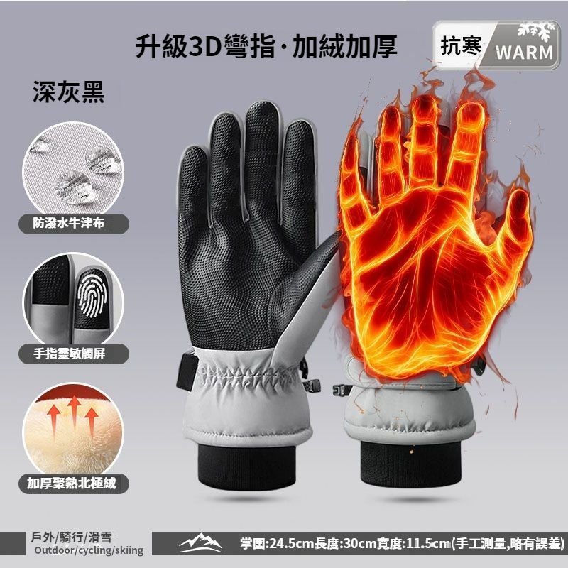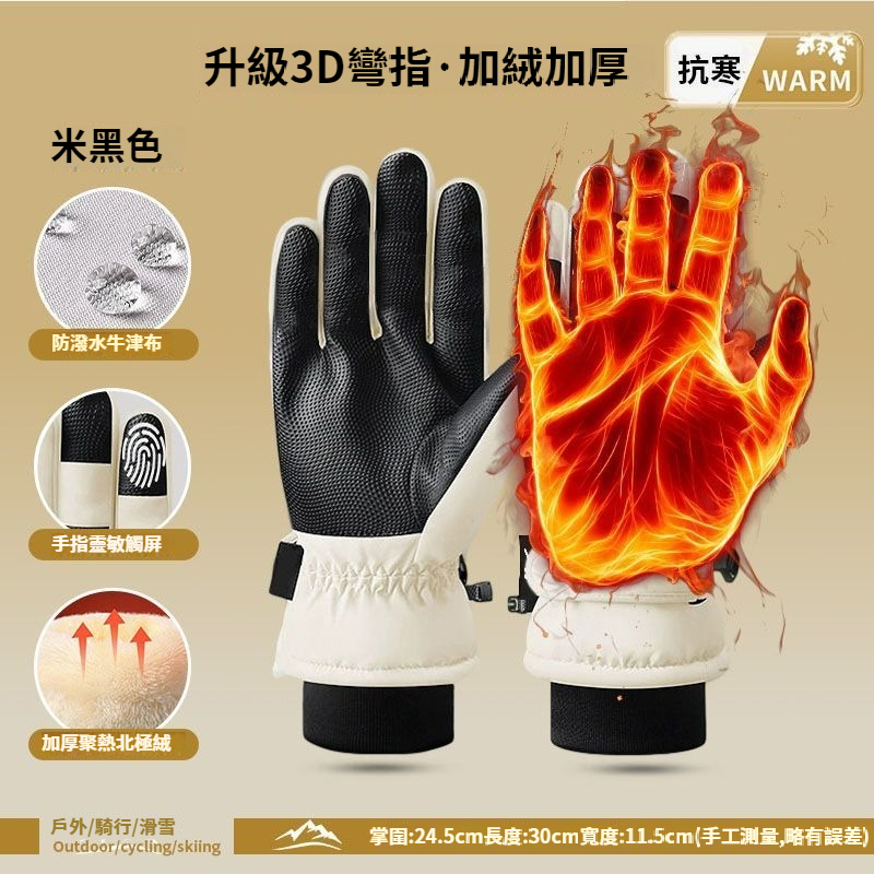 第 1 件 : 滑雪手套男冬季加絨保暖戶外騎乘手套防風防寒觸控螢幕防滑手套