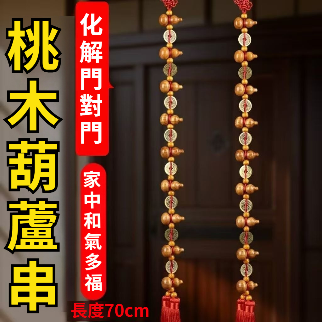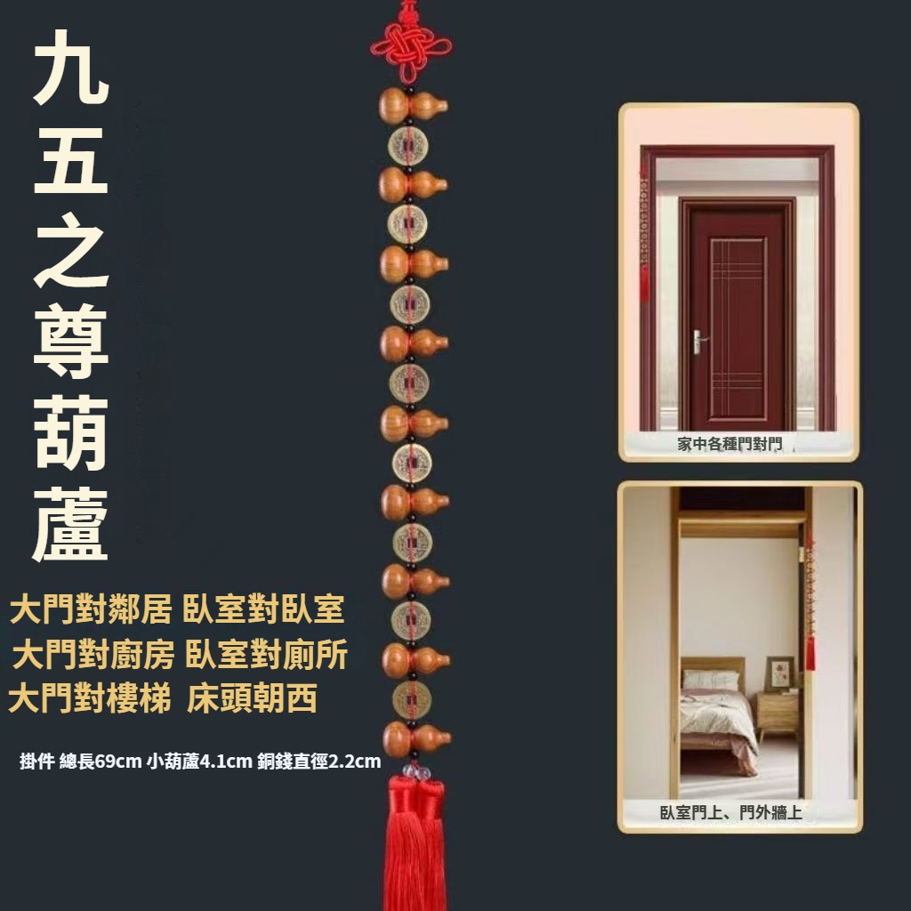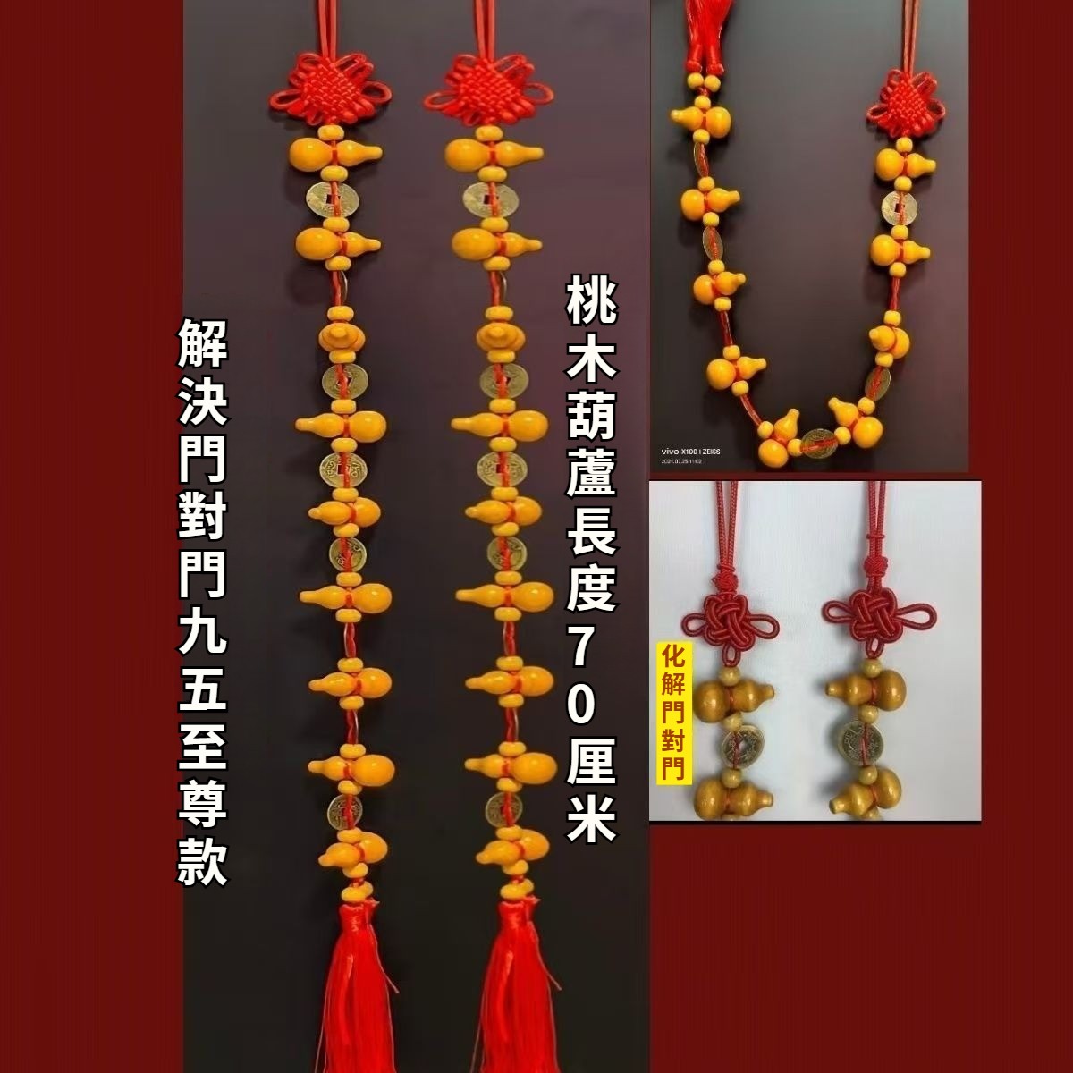 第 1 件 : 70cm九五至尊桃木葫蘆解入戶門對鄰居門中國結銅錢桃木葫蘆掛飾品