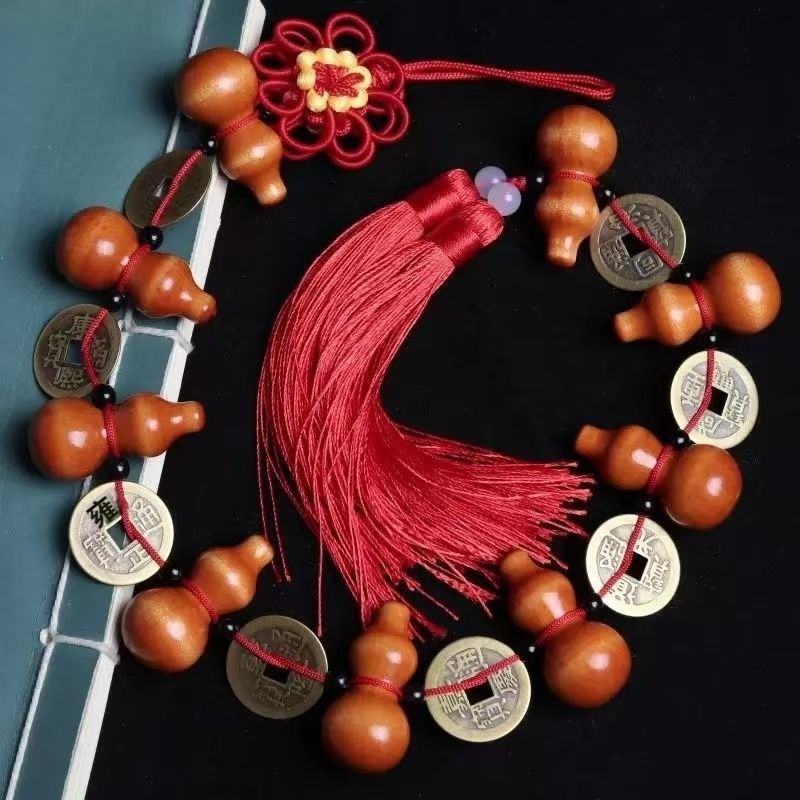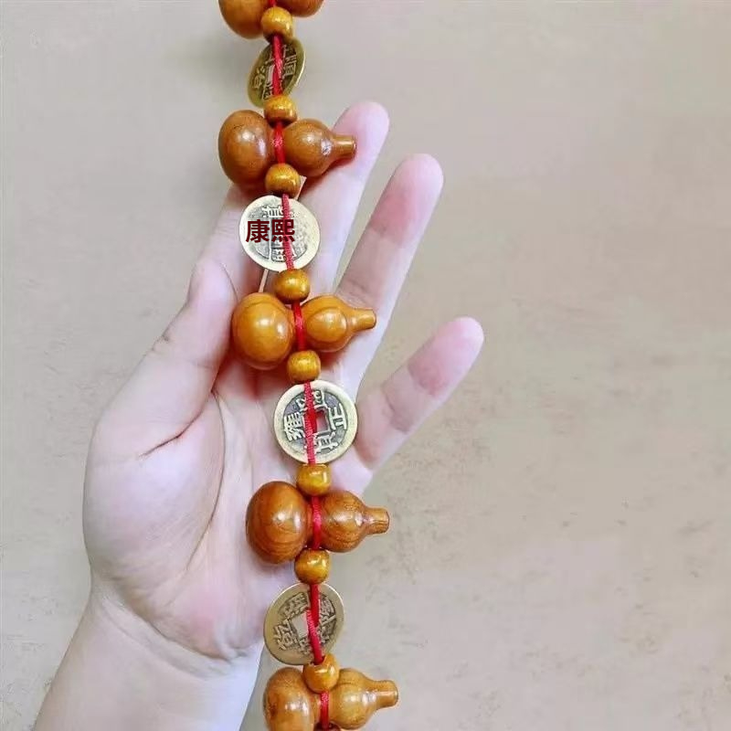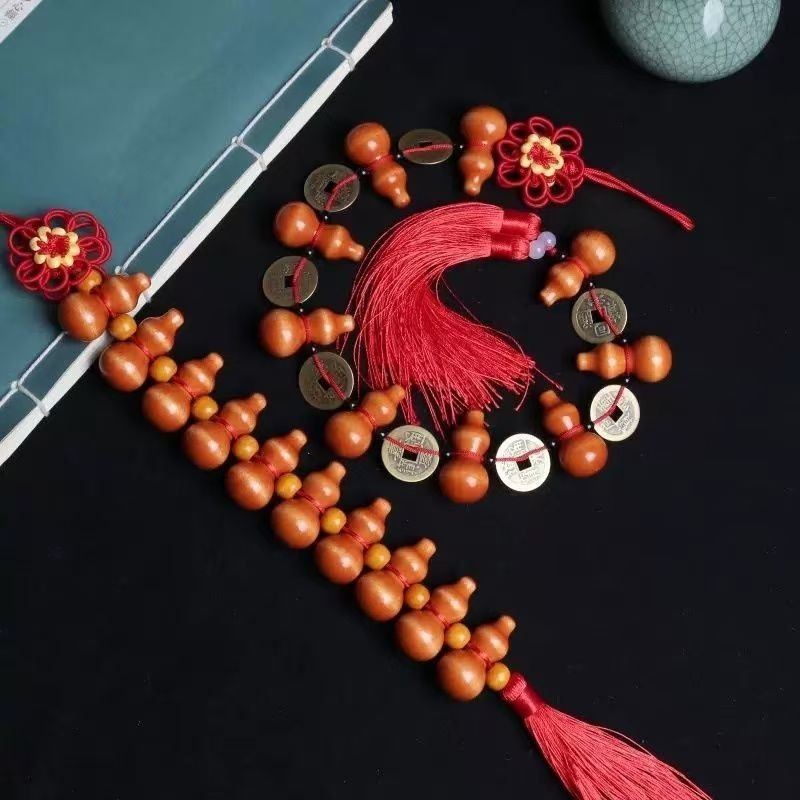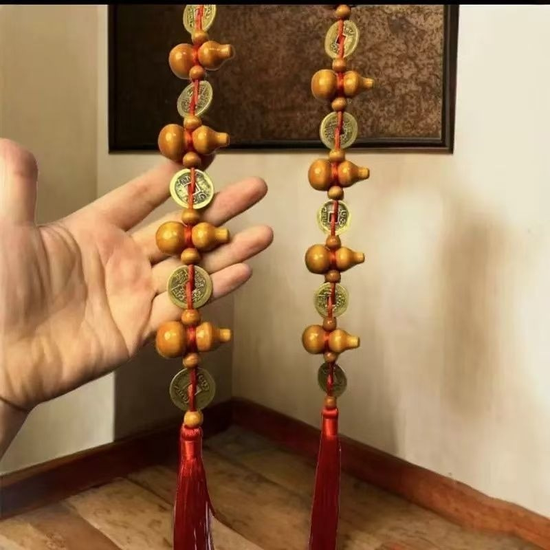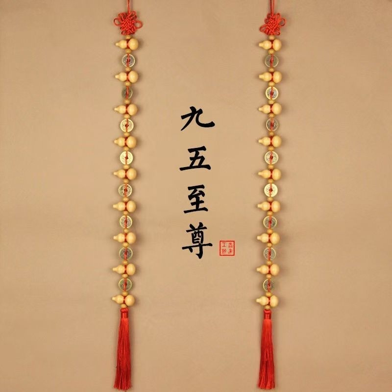 第 1 件 : 70cm九五至尊桃木葫蘆解入戶門對鄰居門中國結銅錢桃木葫蘆掛飾品