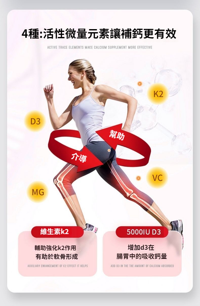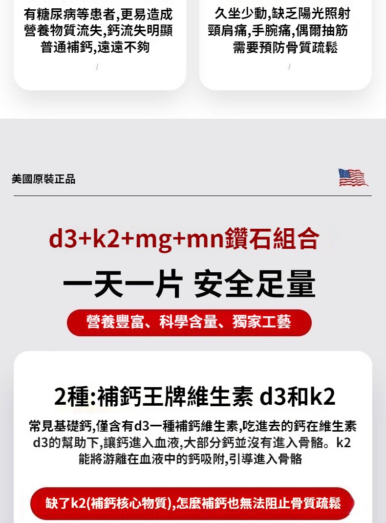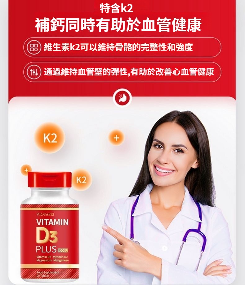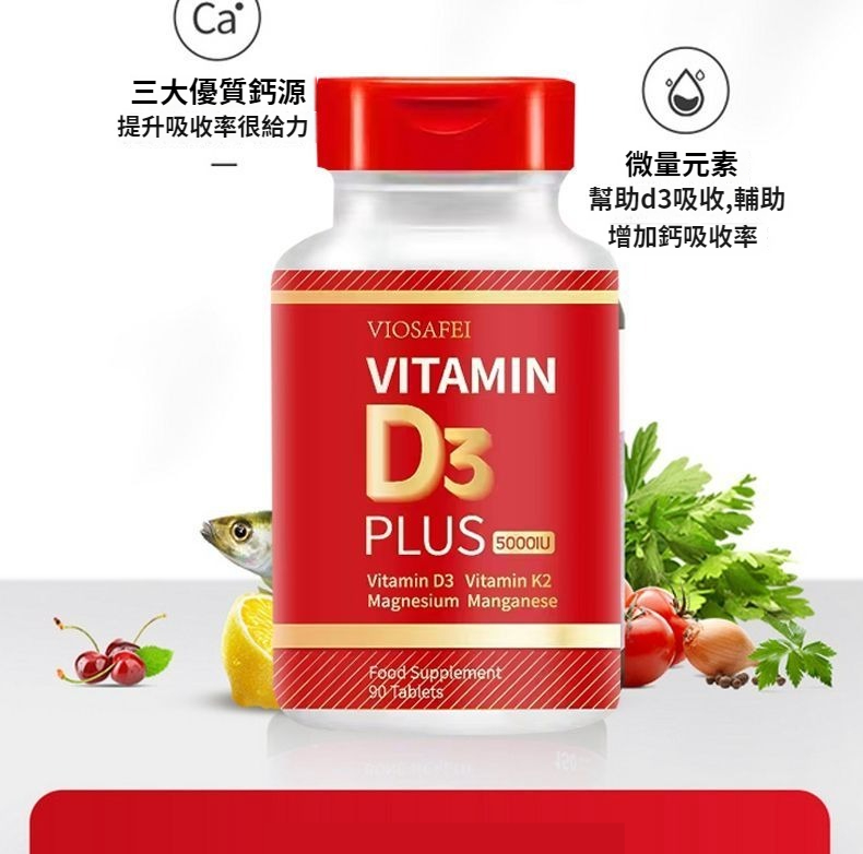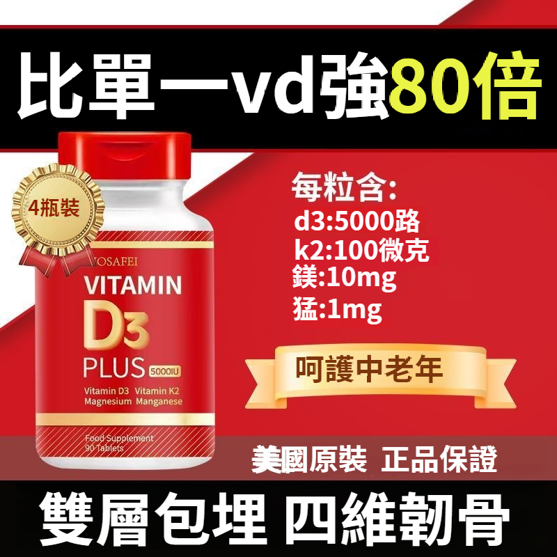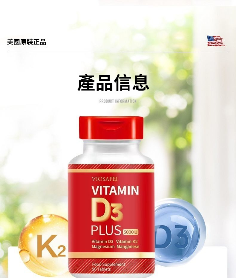 美國進口高鈣維生素D3+K2+鎂5000iu活性25羥基孕婦備孕成人青少年
