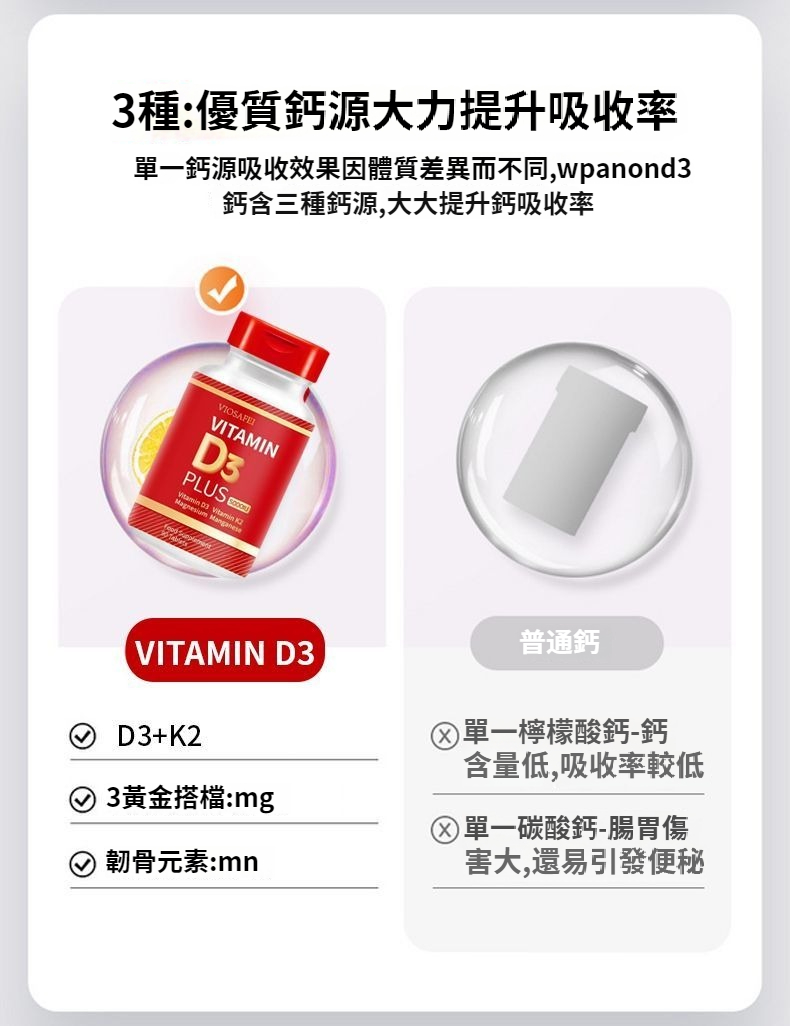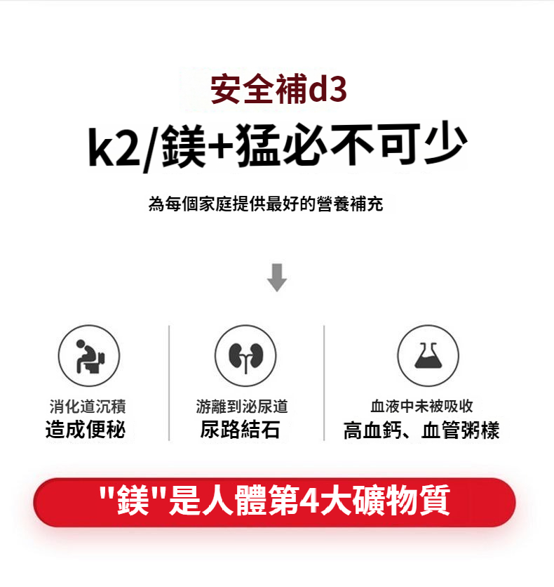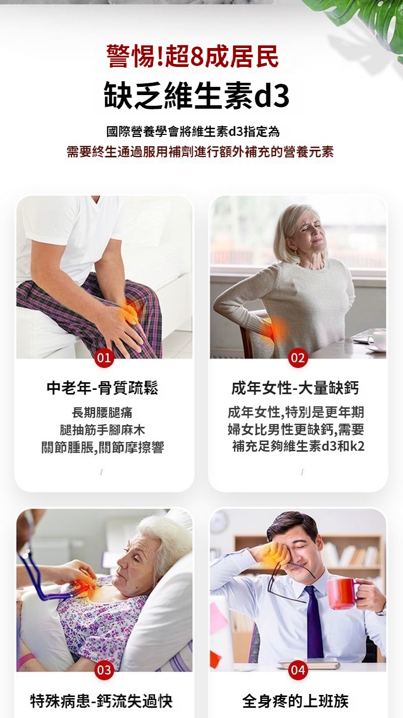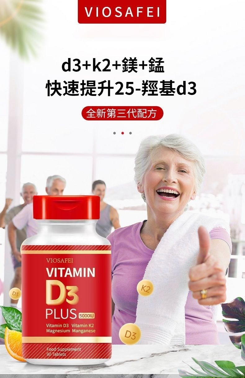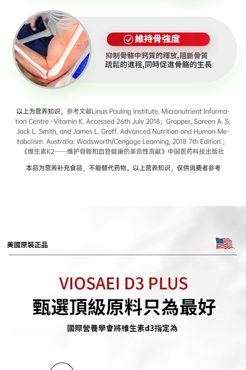 美國進口高鈣維生素D3+K2+鎂5000iu活性25羥基孕婦備孕成人青少年