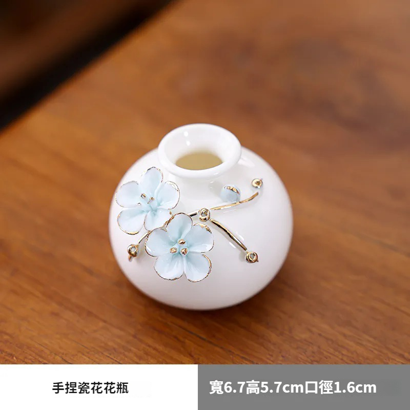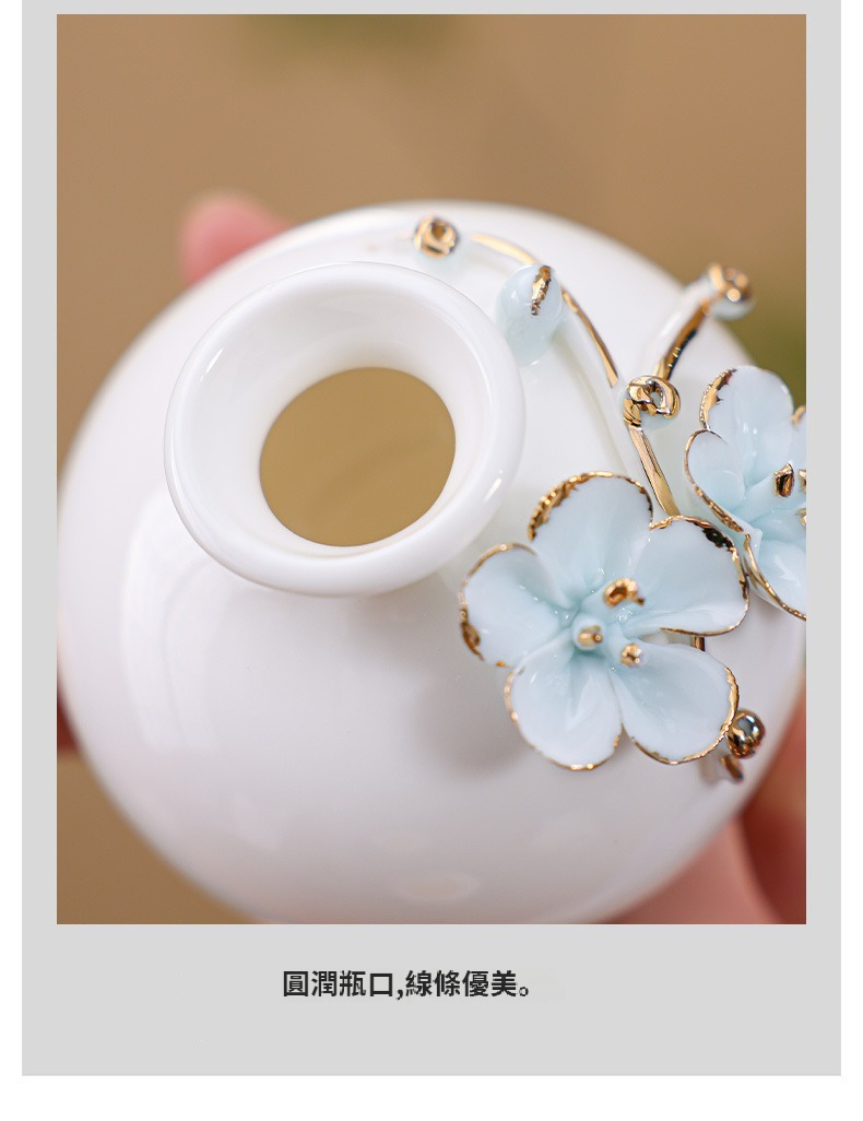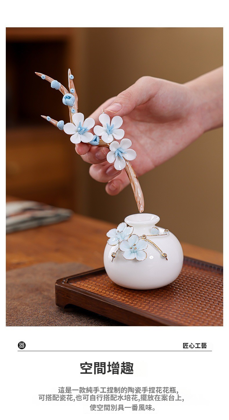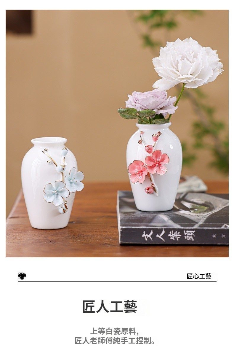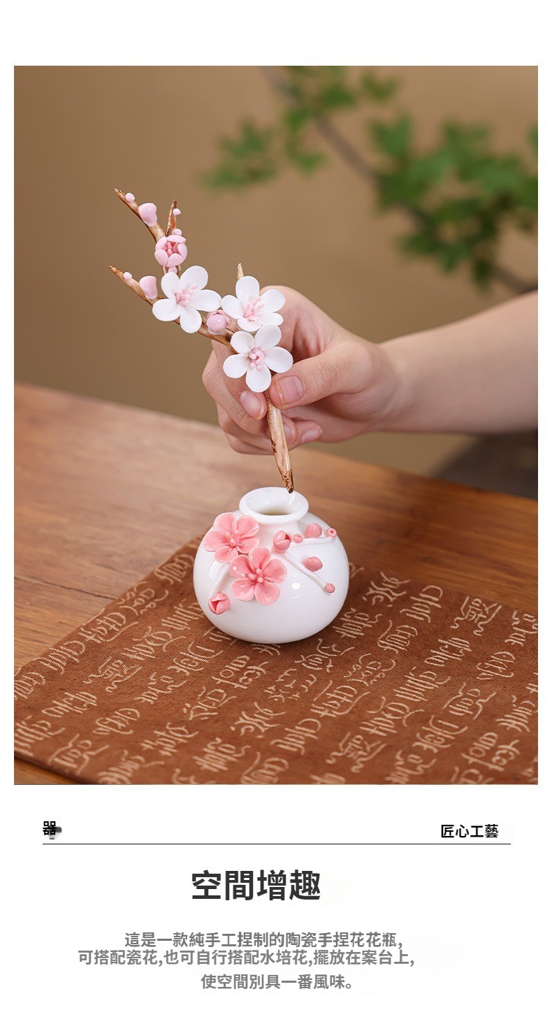 陶瓷手工捏花圓梅花瓶羊脂玉瓷溫潤通透小清新花器插梅花瓷器擺件