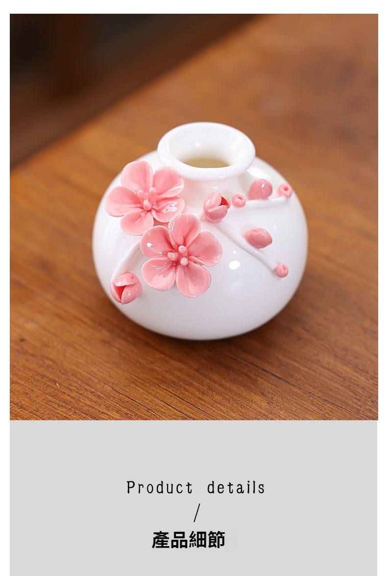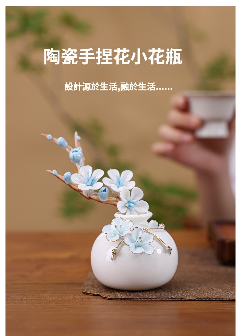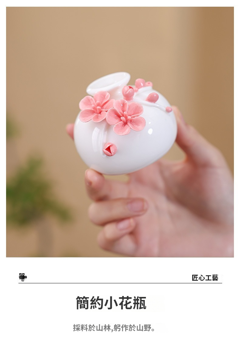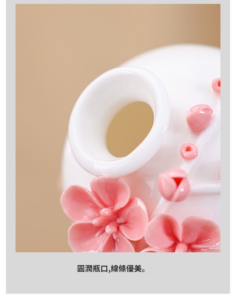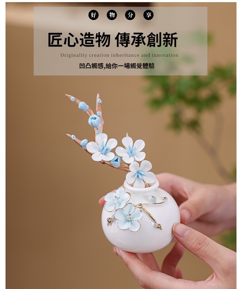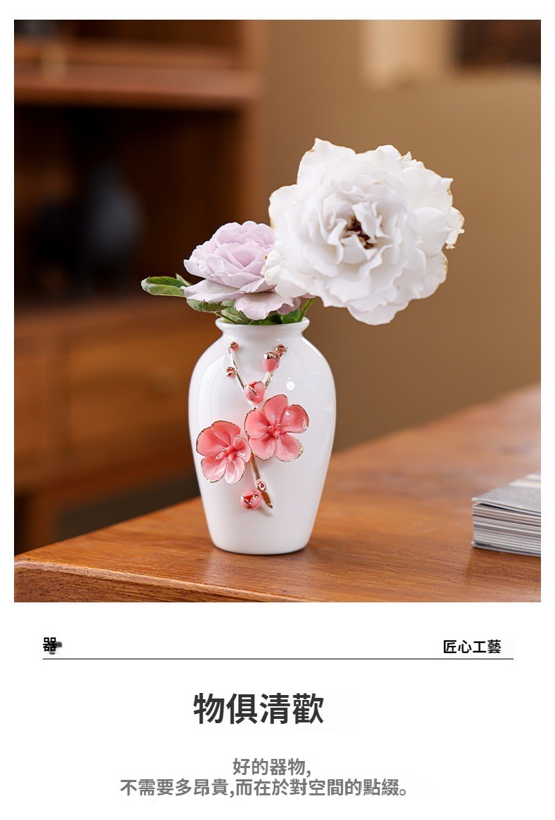陶瓷手工捏花圓梅花瓶羊脂玉瓷溫潤通透小清新花器插梅花瓷器擺件