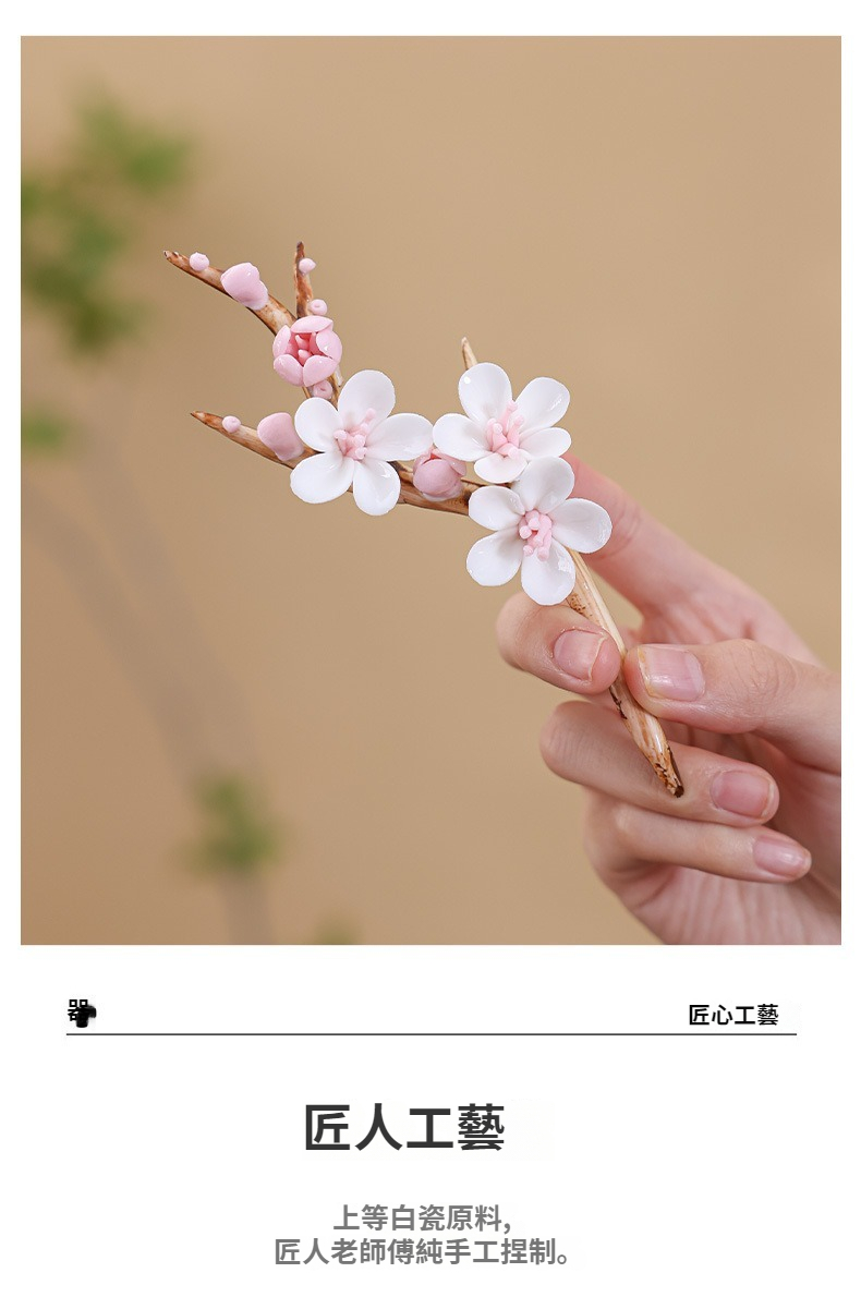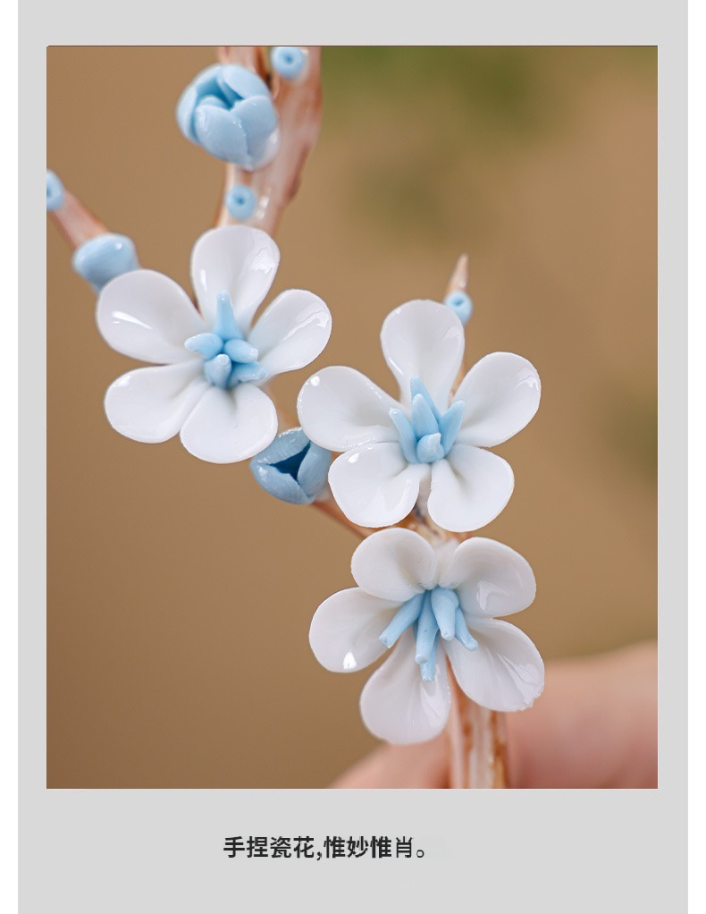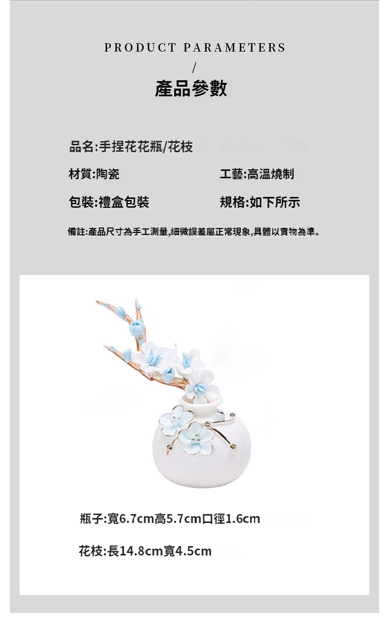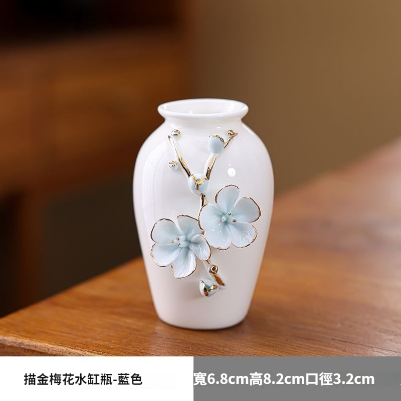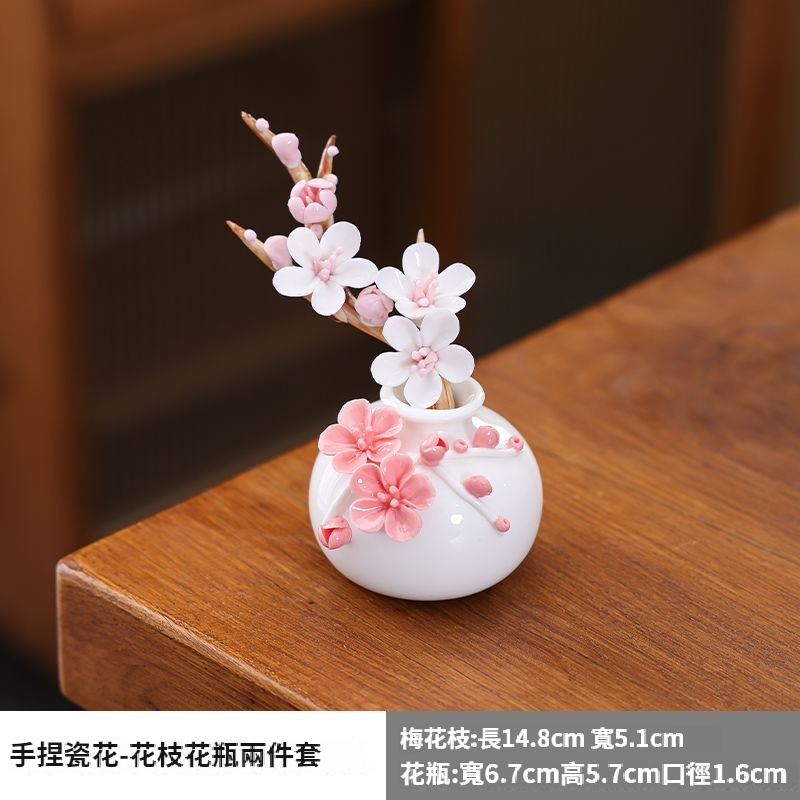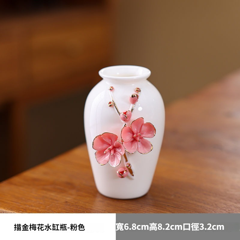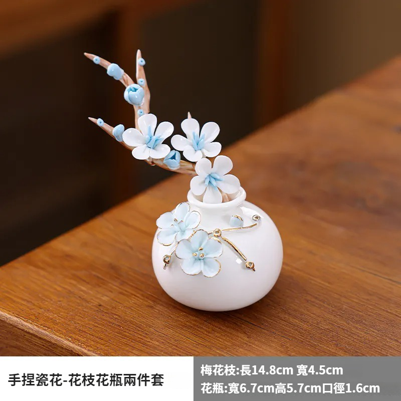 陶瓷手工捏花圓梅花瓶羊脂玉瓷溫潤通透小清新花器插梅花瓷器擺件