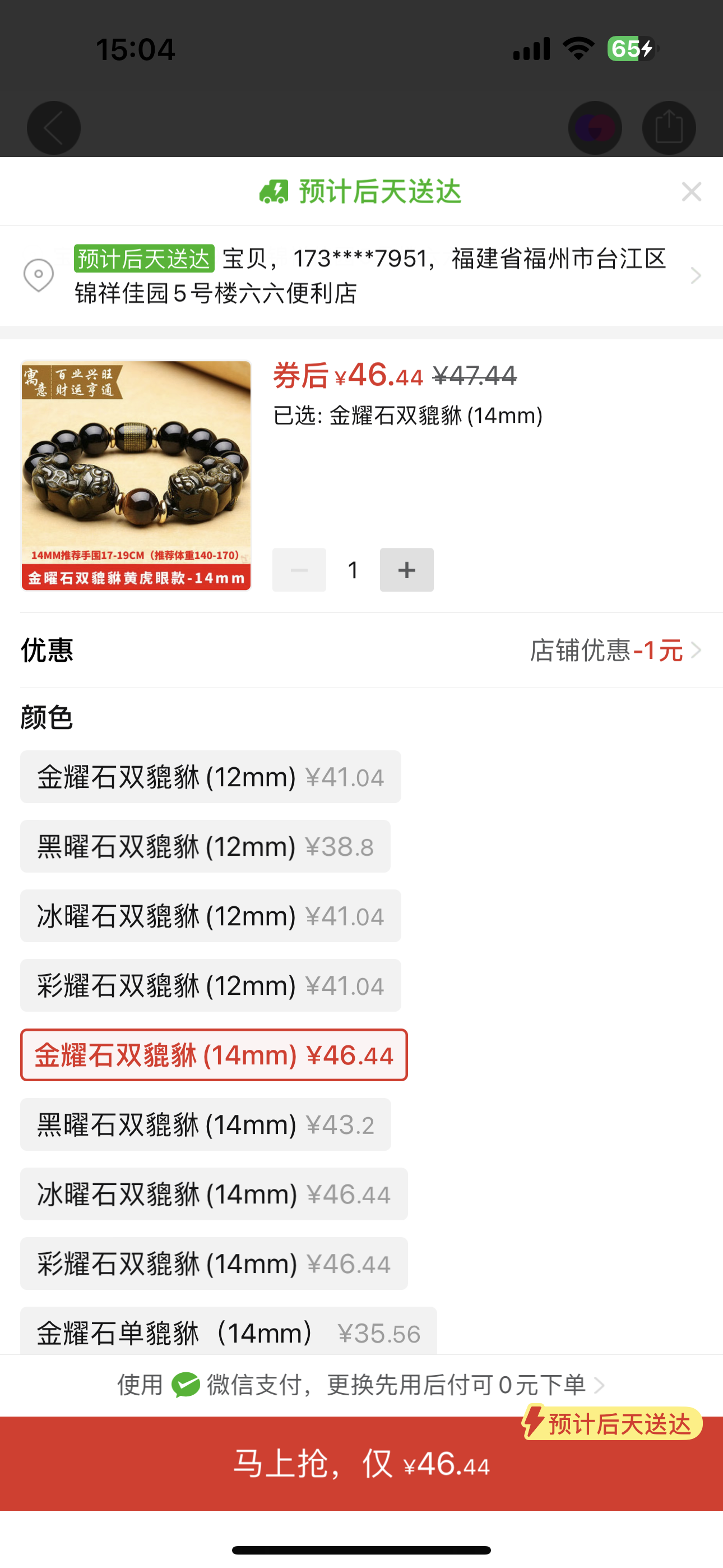 ①金曜石雙貔貅手串14mm一串 ②生精片1粒 ③黃秋葵牡蠣1粒