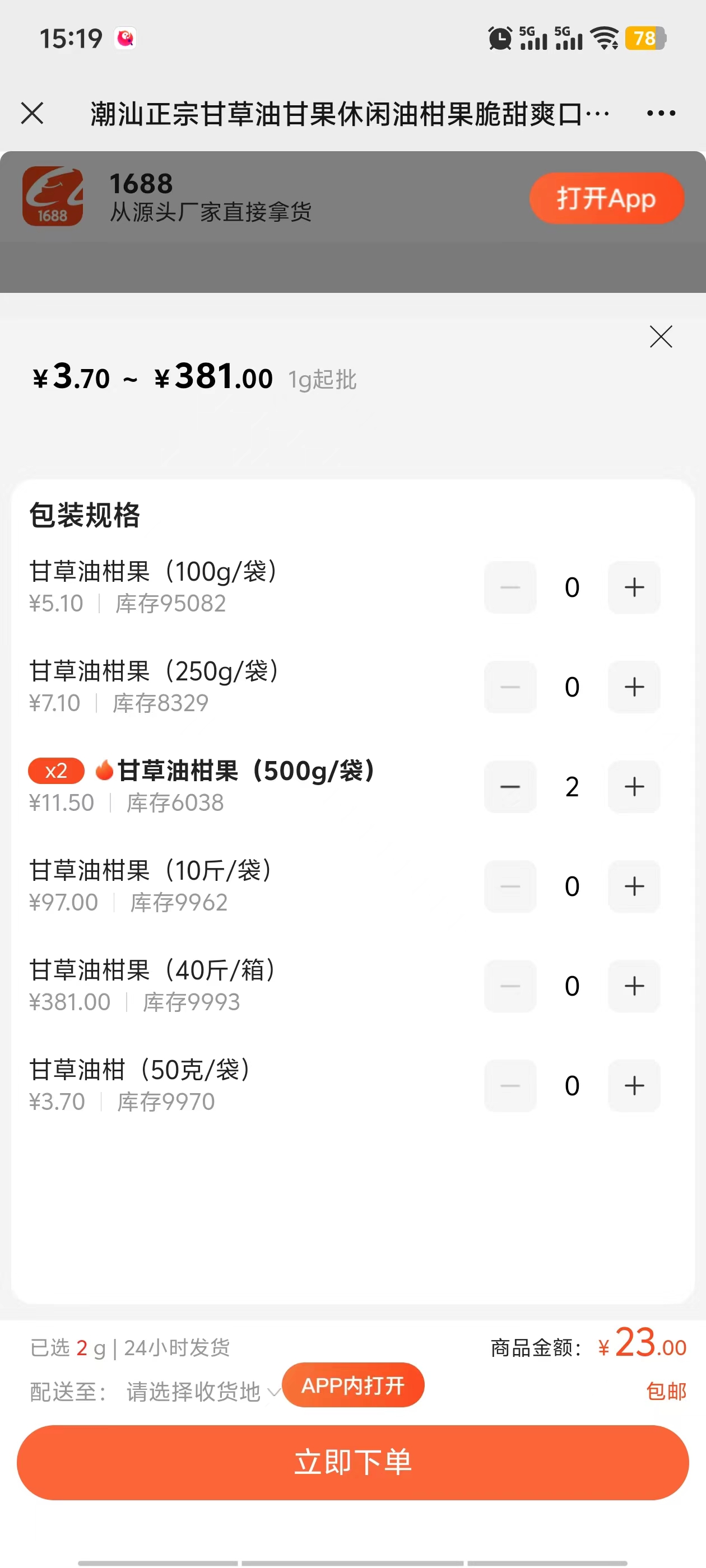 【潮汕正宗甘草油甘果休闲油柑果脆甜爽口果干成人孕妇零食蜜饯开胃】复制¥ckuFLWV64WSaf¥,打开【手机阿里】或【支付宝-点首页进行搜索】查看:https://qr.1688.com/s/la5f4Kwl CZ5677