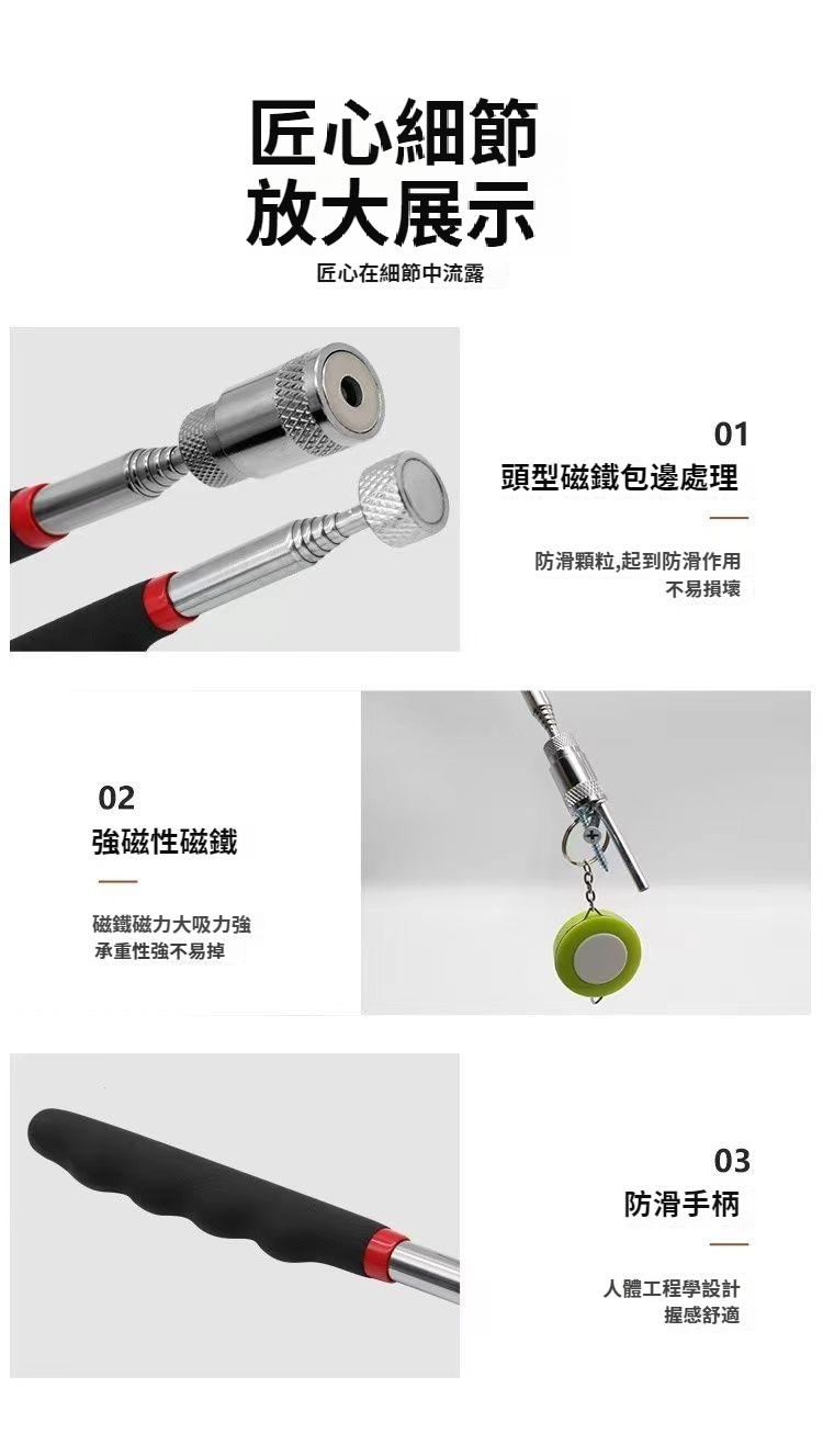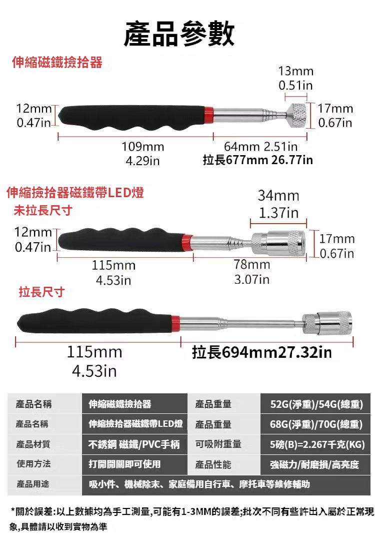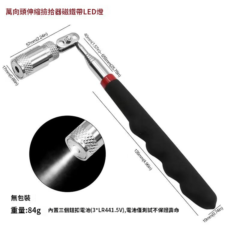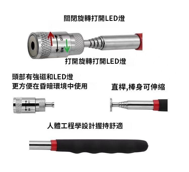 吸鐵棒磁力吸力棒 伸縮撿拾器磁鐵帶LED燈金屬零件伸縮式撿拾器