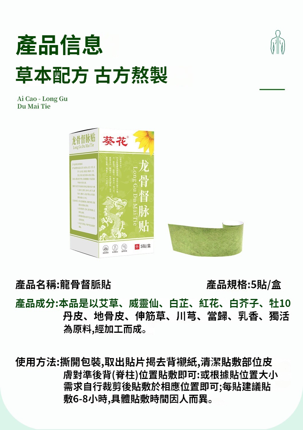 葵花龍骨督脈貼艾灸艾草貼背僵硬腰疼酸軟頸椎三焦背痛腱鞘體虛