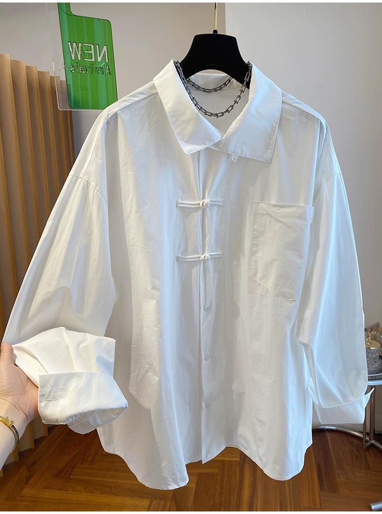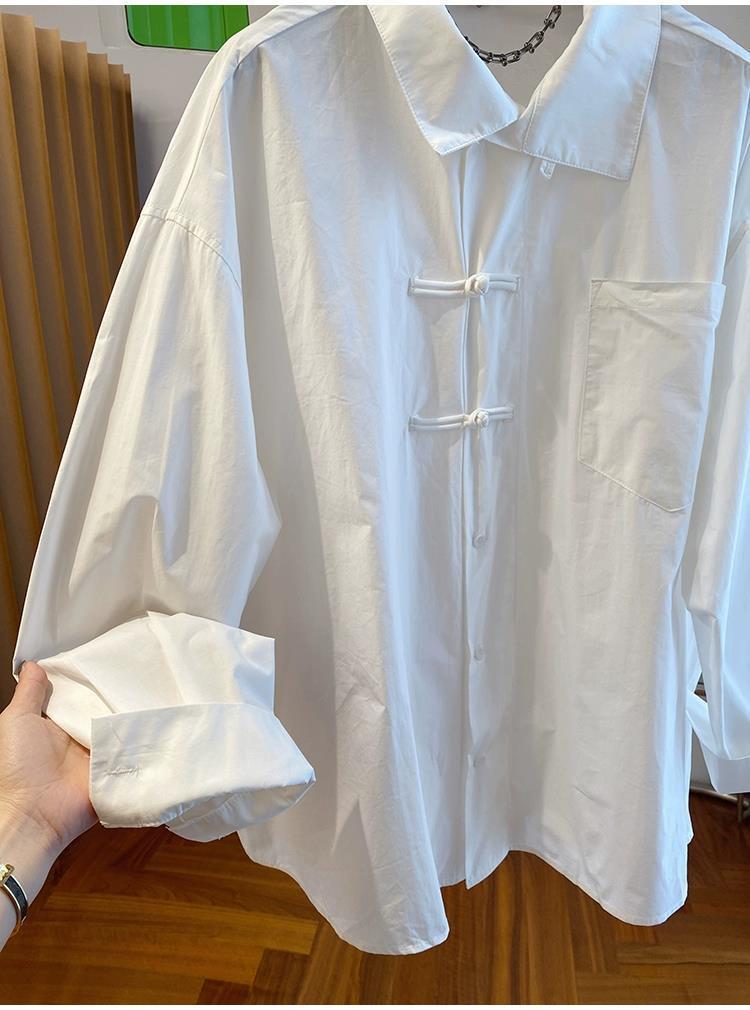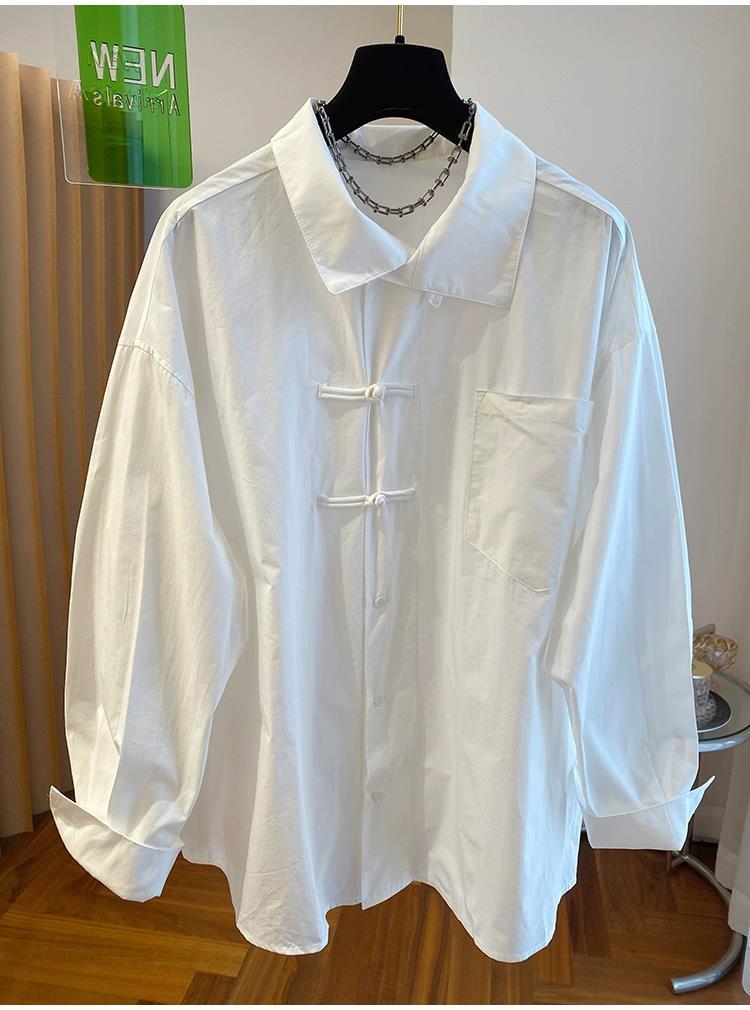 第 1 件 : 春裝2025新款小眾復古新中式輕國風盤扣長袖襯衫女內搭打底衫上衣
