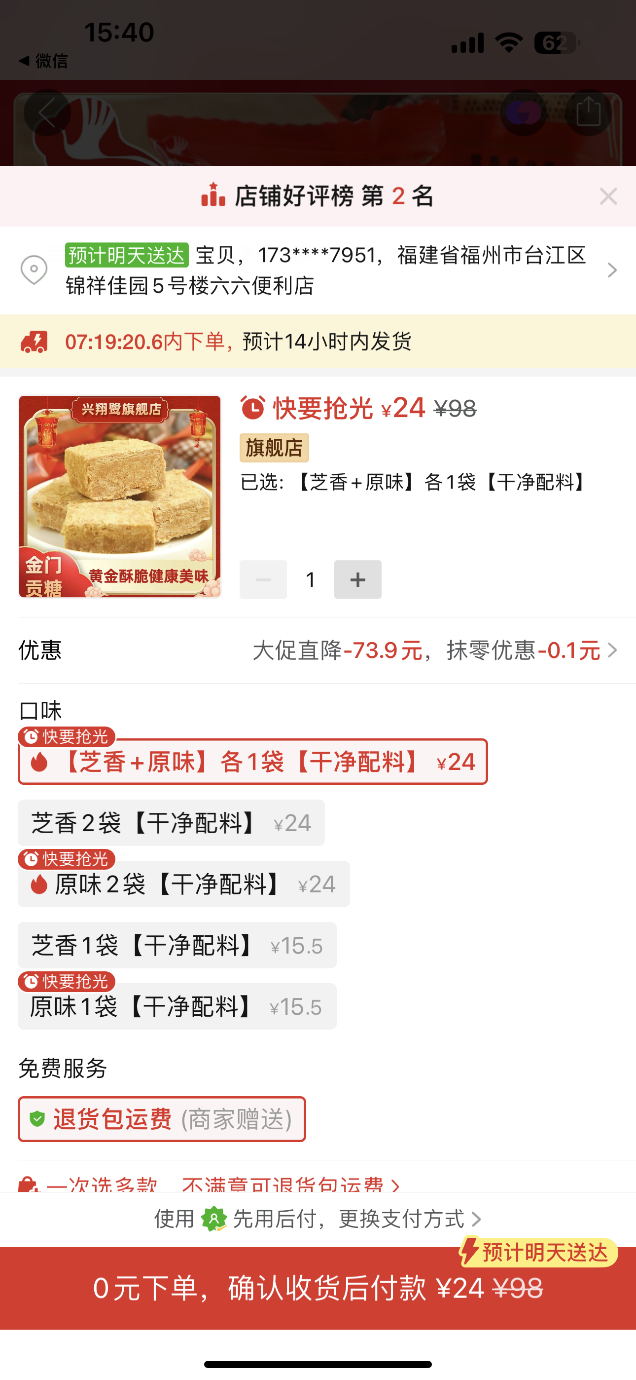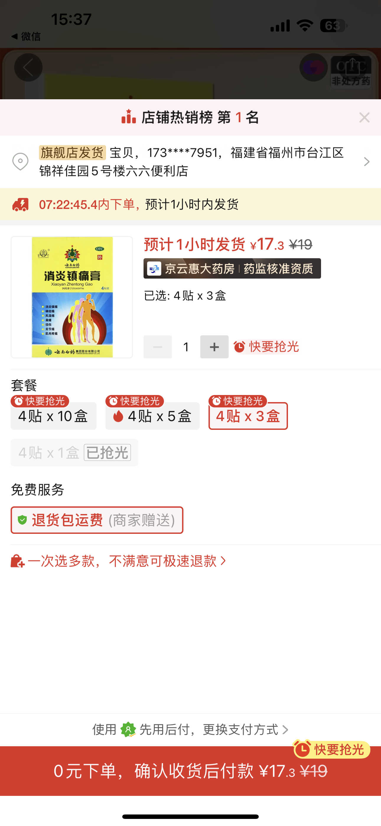 劉** 搶購成功 15 分鐘前