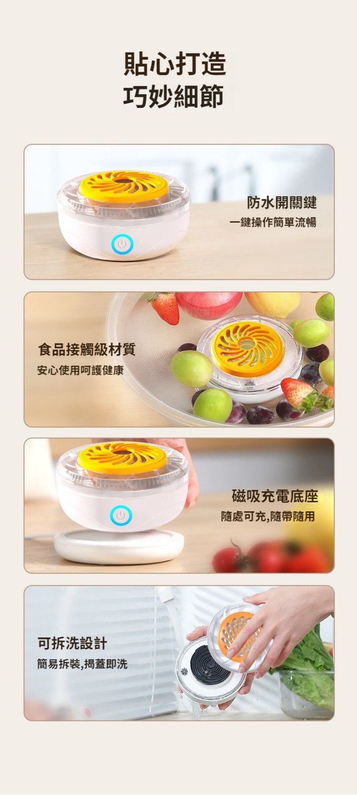 第 3 件 : 旋轉蔬果淨化器無線充電便攜式水果家用殺菌農殘去除洗菜機清洗機