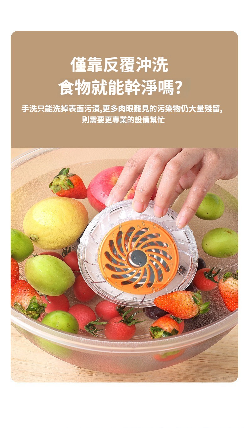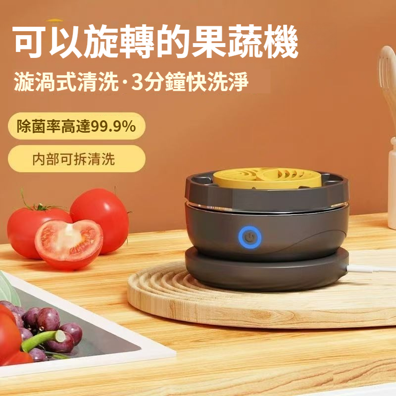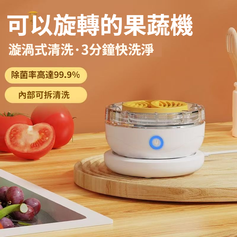 【旋轉蔬果淨化器】無線充電便攜式水果家用殺菌農殘去除洗菜機清洗機