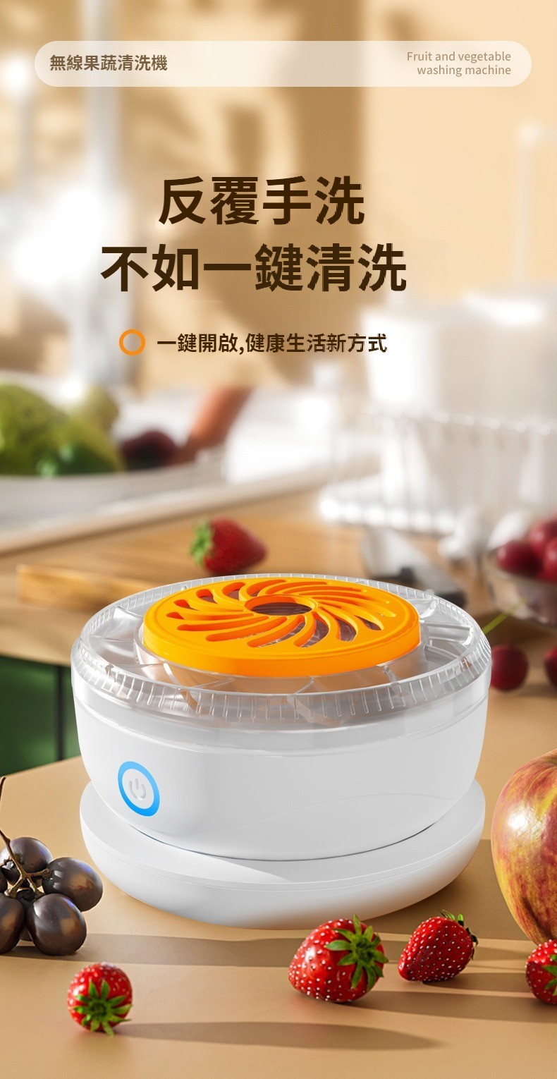 第 2 件 : 旋轉蔬果淨化器無線充電便攜式水果家用殺菌農殘去除洗菜機清洗機
