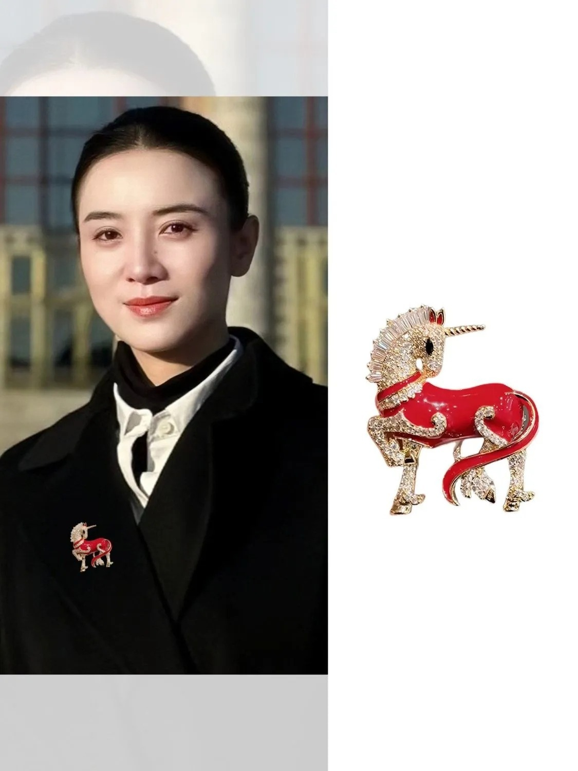 復古獨角駿馬紅色胸針高級感氣質港風獨特胸花別針優雅氣質配飾女
