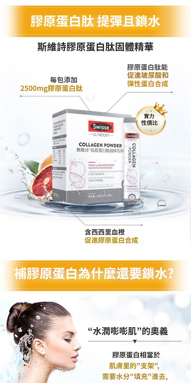Swisse 斯維詩膠原蛋白粉膠原蛋白肽3g*28包血橙精華亮膚固態飲料