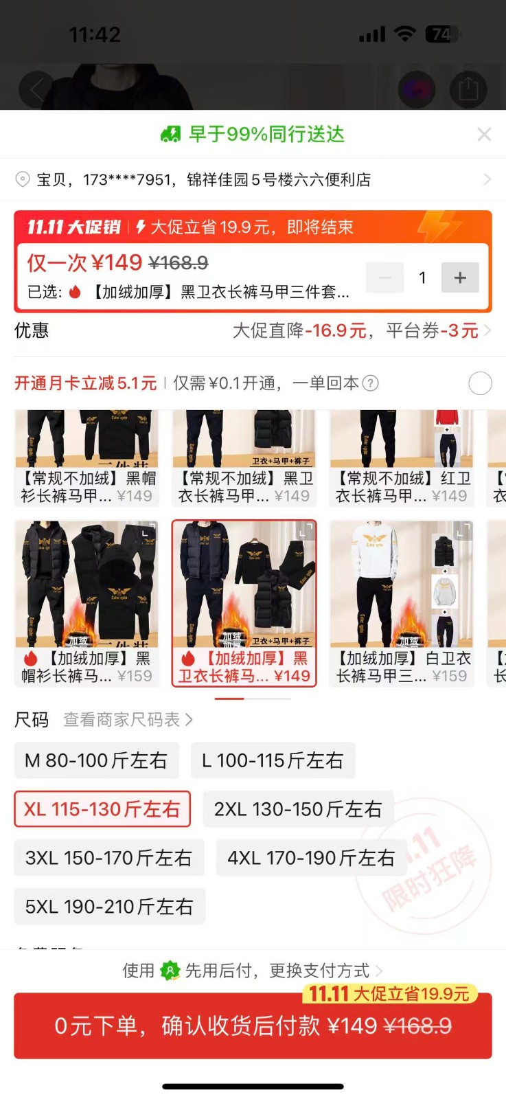 ③加絨黑色三件套衛衣馬甲XL尺碼1套 149元:https://mobile.yangkeduo.com/goods1.html?ps=aOzeth0L93