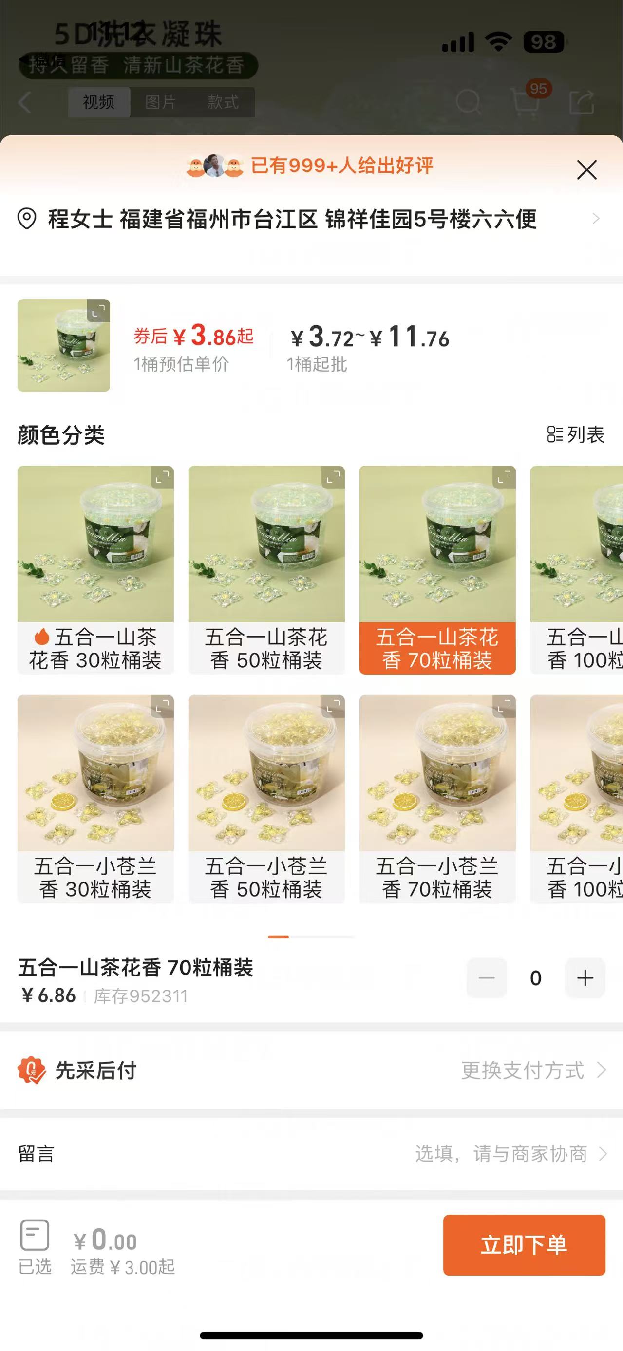 ①山茶花洗衣凝珠2桶(1桶70粒)+②藍色風暴1粒+③中東迪拜香水咖啡銀各一瓶
