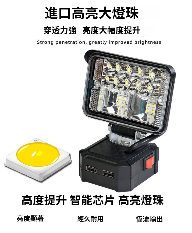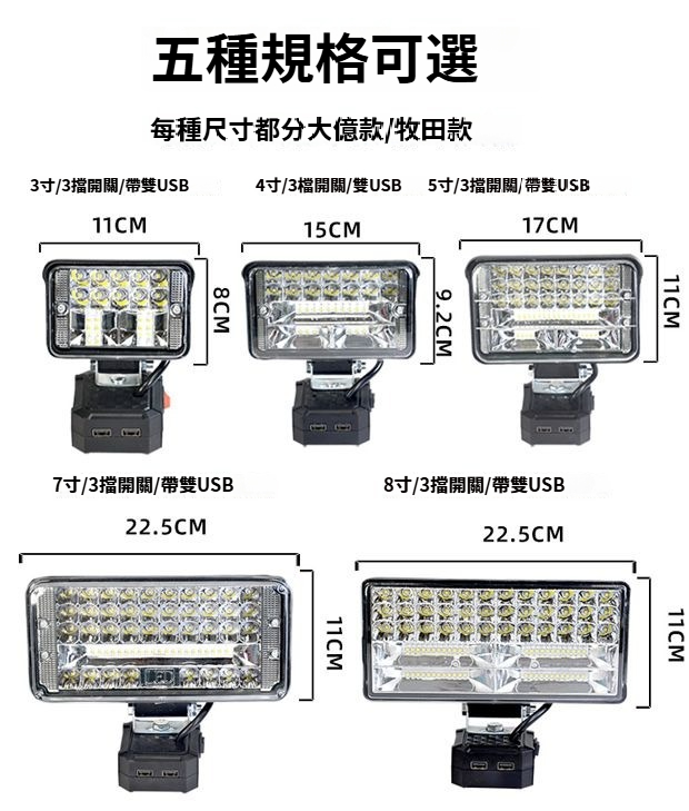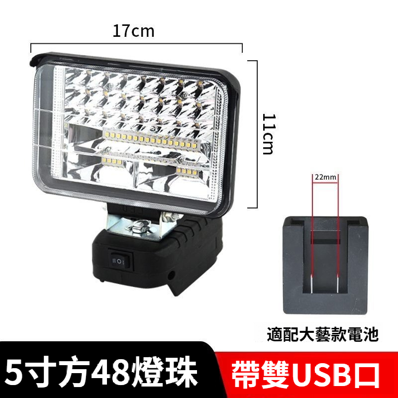 大億鋰電池卡槽【雙USB快充】5寸方48珠【遠近光】不含電池、一個820