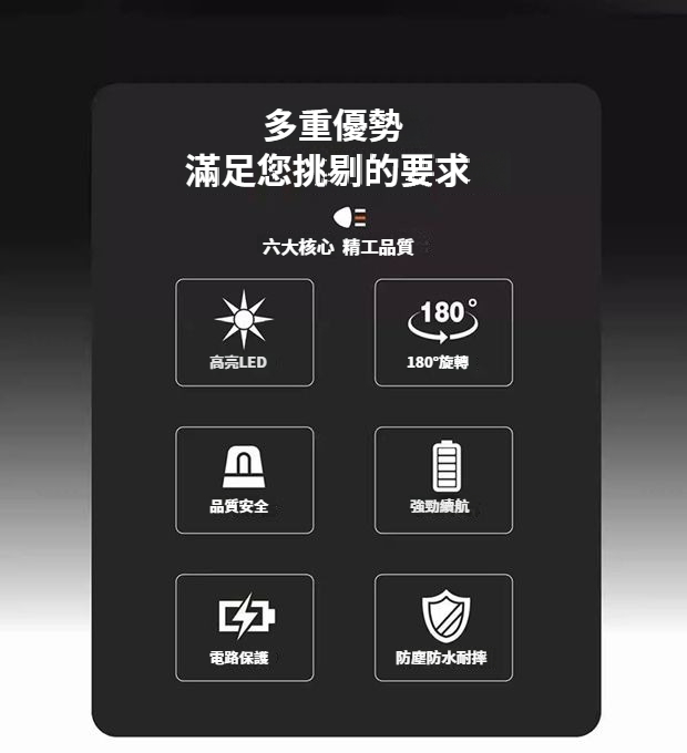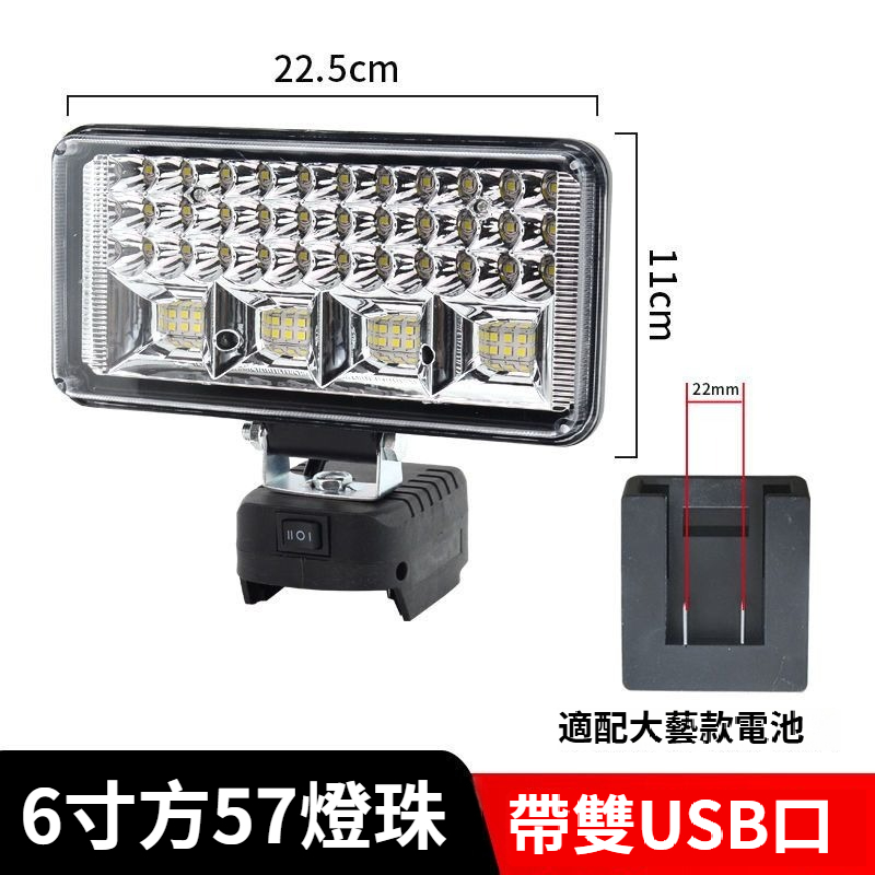 大億鋰電池卡槽【雙USB快充】6寸方57珠【遠近光】不含電池、一個850