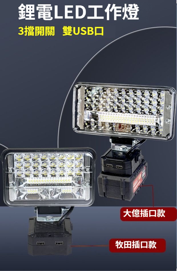 大牧藝田鋰電池48VF88F工作照明LED燈電動工具電池戶外維修緊急燈