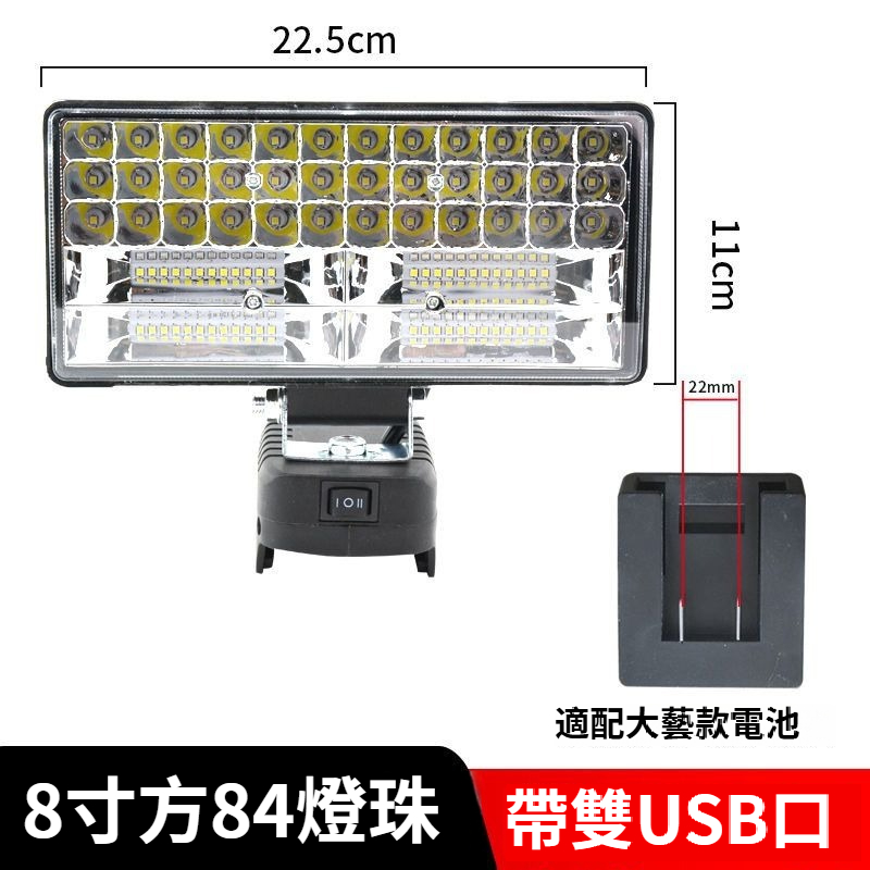 大億鋰電池卡槽【雙USB快充】8寸方84珠【遠近光】不含電池、兩個990