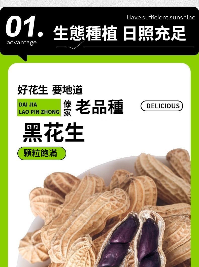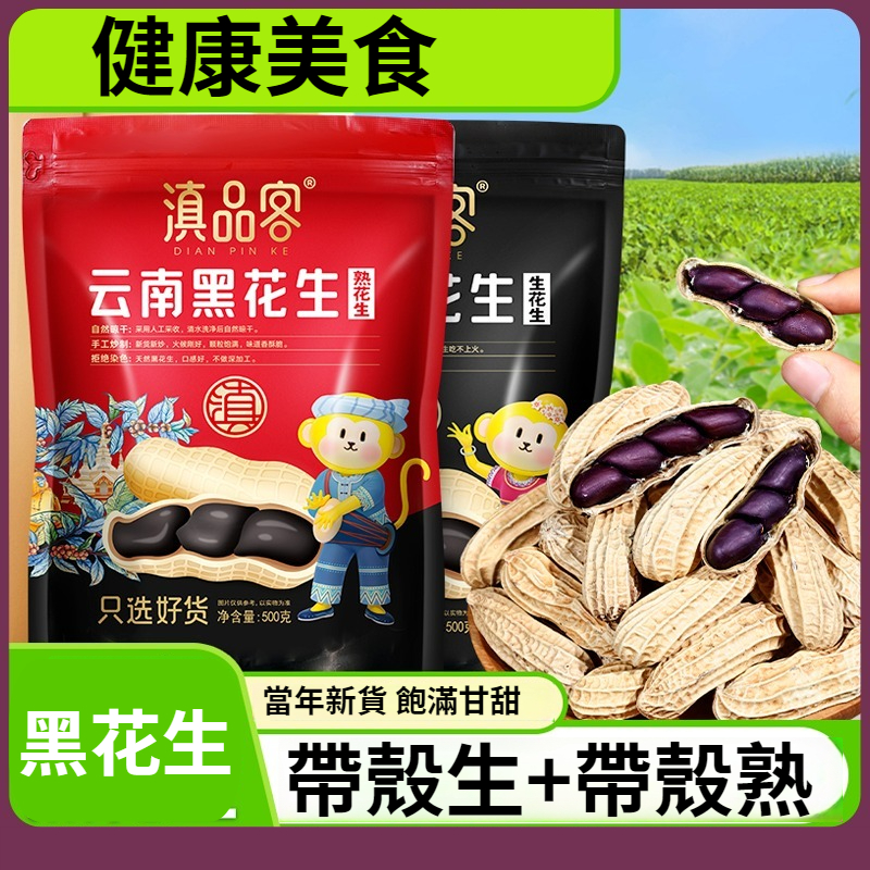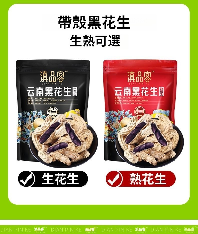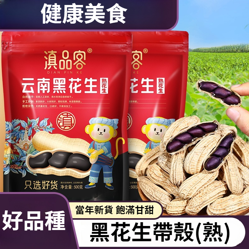 第 1 件 : 雲南黑花生新貨曬乾帶殼生吃原味炒熟黑皮花生米批發