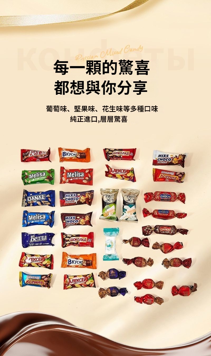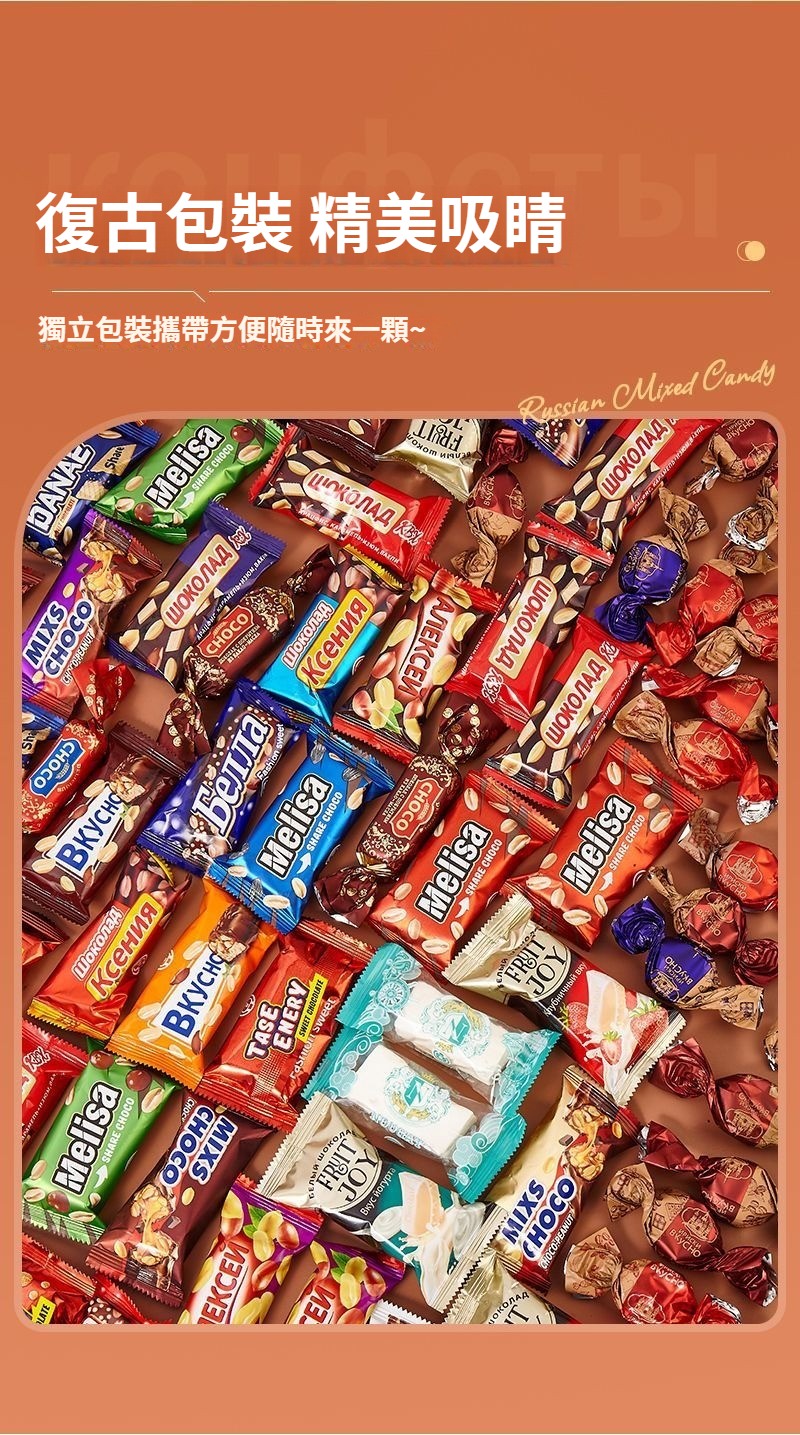 俄羅斯進口巧克力混合糖果紫皮糖休閑零食品年貨圣誕喜糖送禮禮盒 NT$ 1199