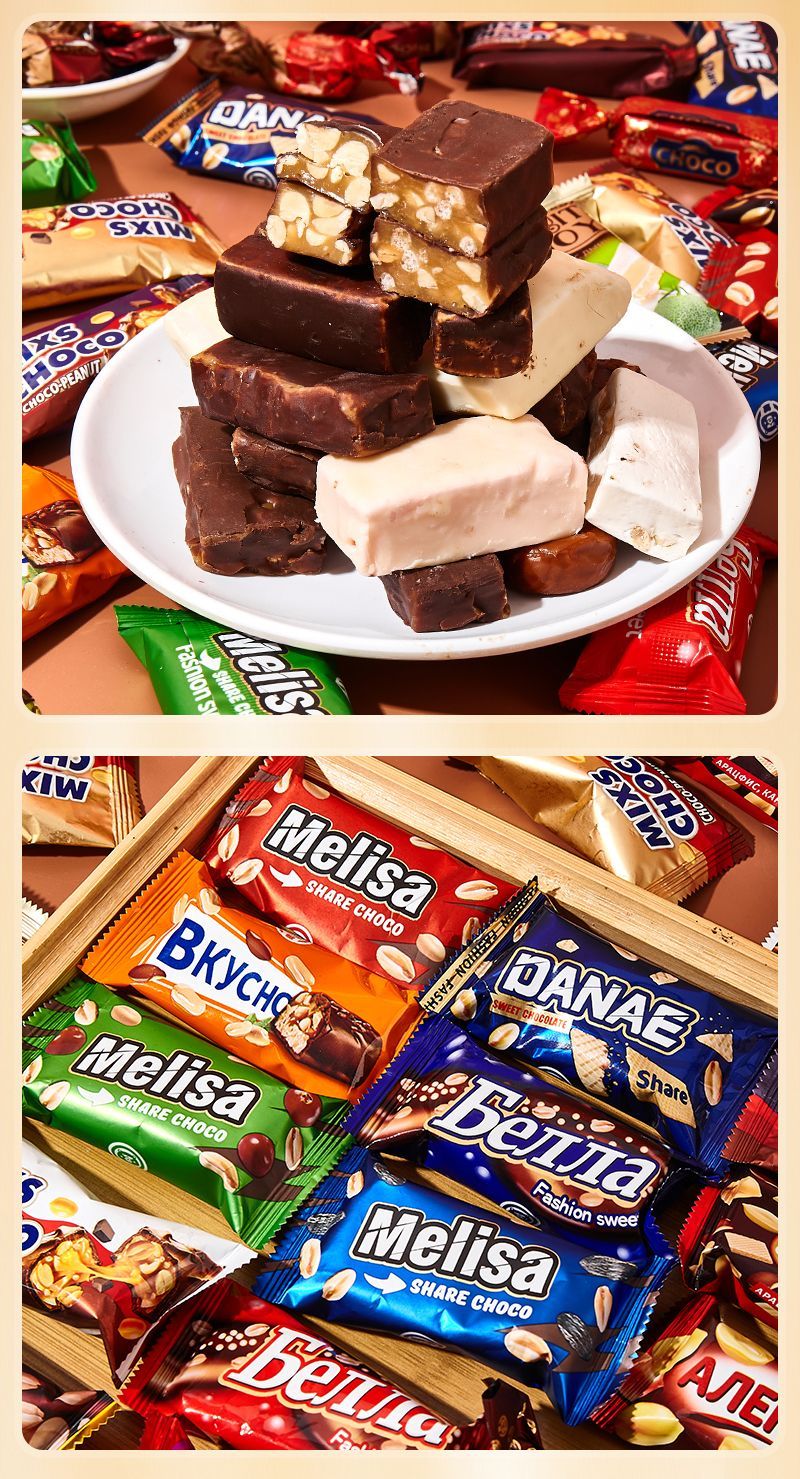 俄羅斯進口巧克力混合糖果紫皮糖休閑零食品年貨圣誕喜糖送禮禮盒