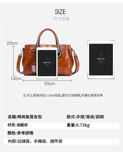 新款歐美復古皮革潮流油蠟皮手提單肩斜挎包