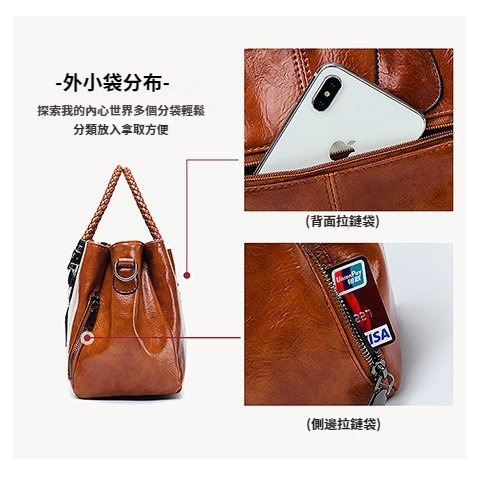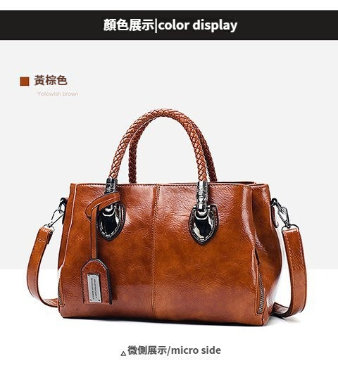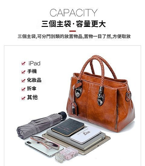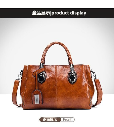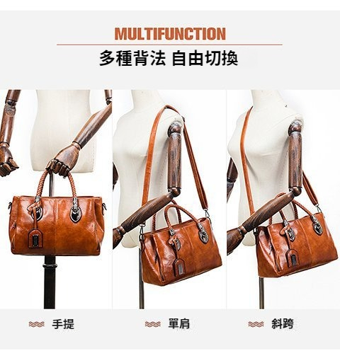 第 2 件 : 新款歐美復古皮革潮流油蠟皮手提單肩斜挎包