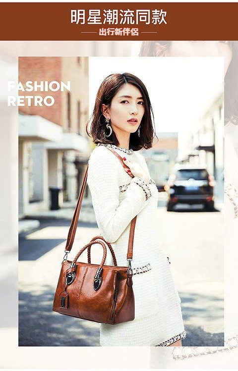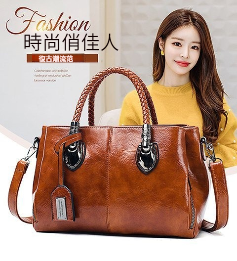 第 1 件 : 新款歐美復古皮革潮流油蠟皮手提單肩斜挎包