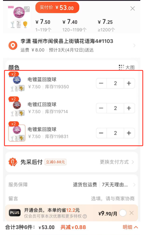②发光回旋球 6个【蓝*2、红*2、紫*2】