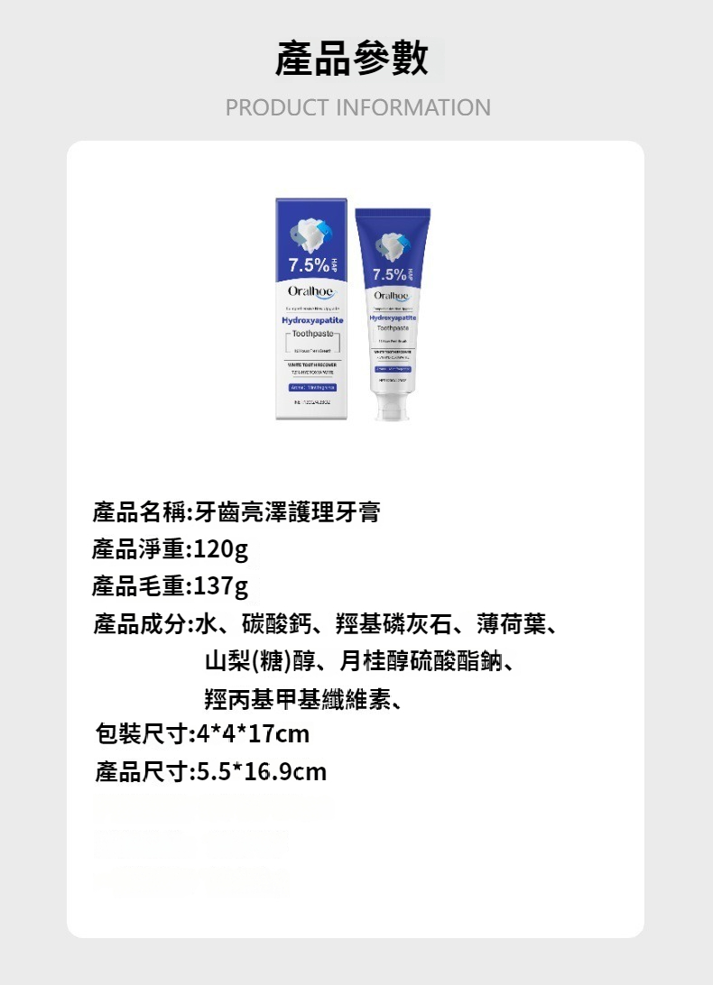 ORALHOE 牙齒亮澤護理牙膏 溫和護齒潔凈牙面清新口氣凈牙牙膏 NT$ 999