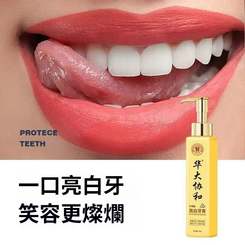 華大協和牛磺酸亮白牙膏150g按壓清新口氣淨澈牙漬護男齒女通用