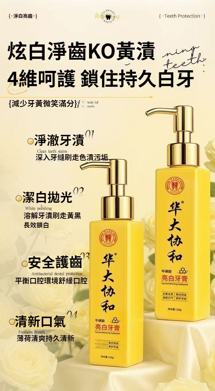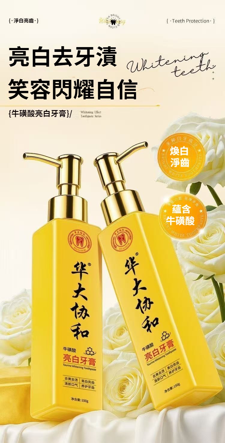 華大協和牛磺酸亮白牙膏150g按壓清新口氣淨澈牙漬護男齒女通用 NT$ 820