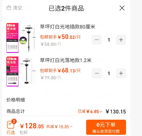 ①草坪燈白光地插款80cm*1個+②草坪燈白光落地款120cm*1個