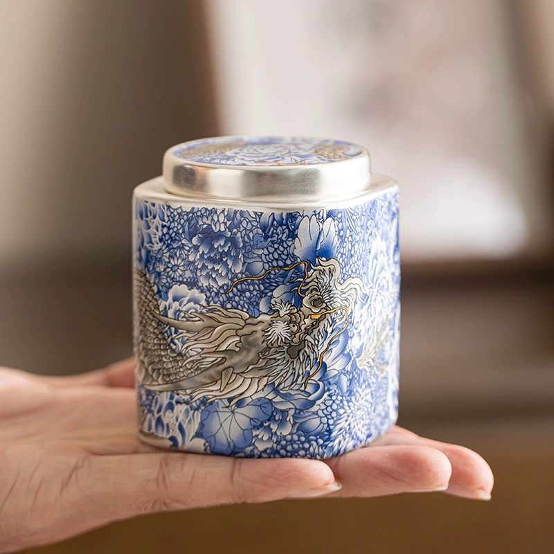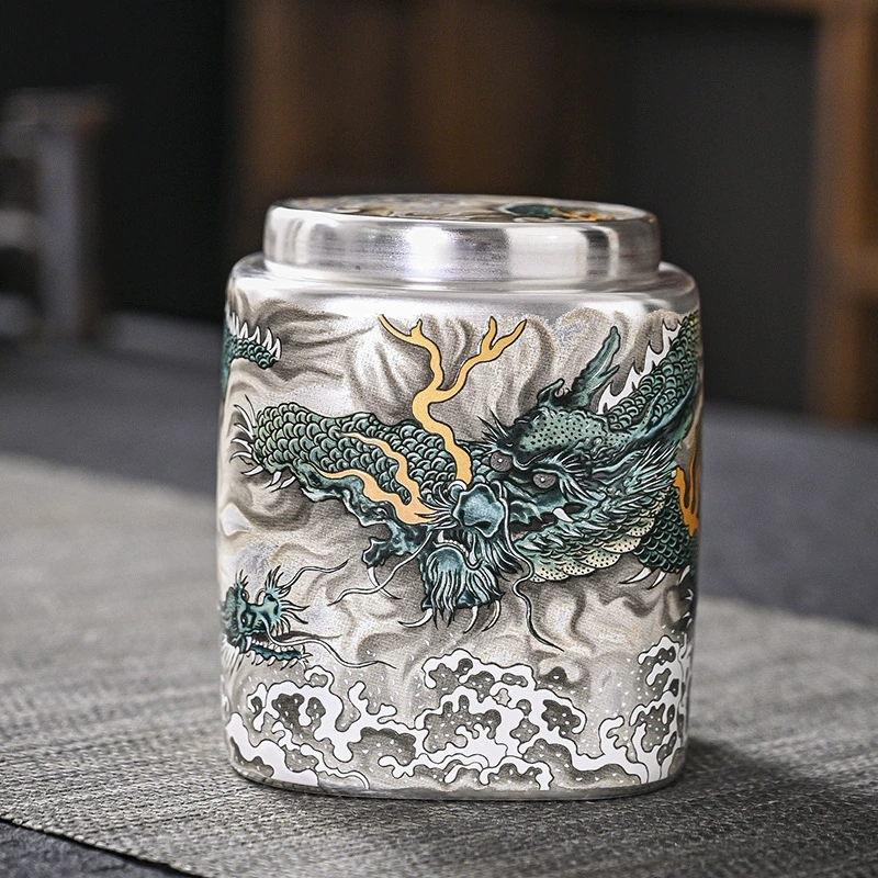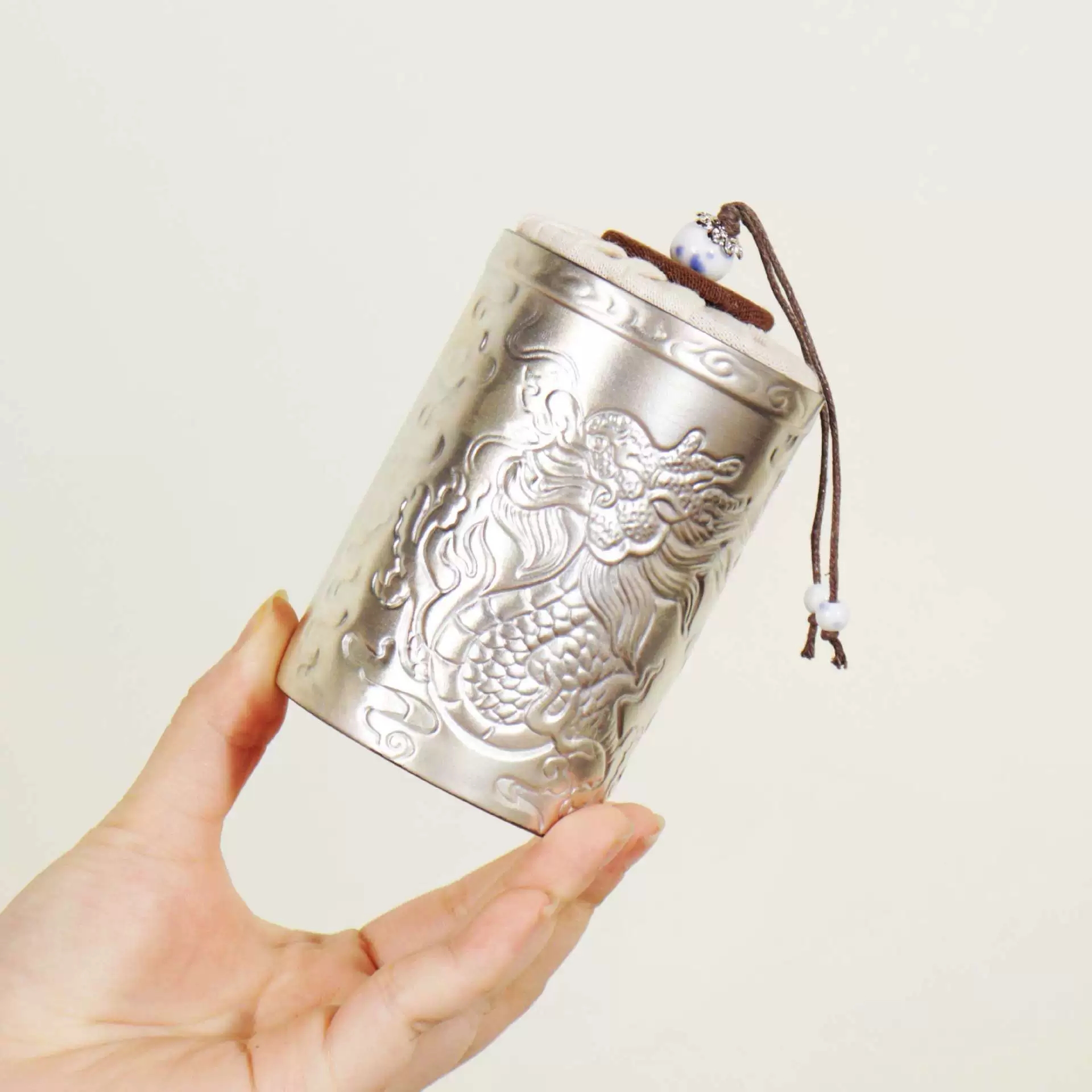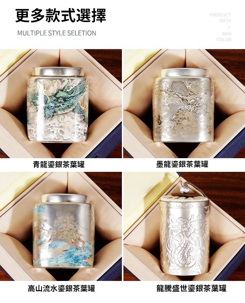 第 1 件 : 999純銀粉鎏銀茶葉罐 密封食品收納盒高級罐子便攜防潮儲存茶罐