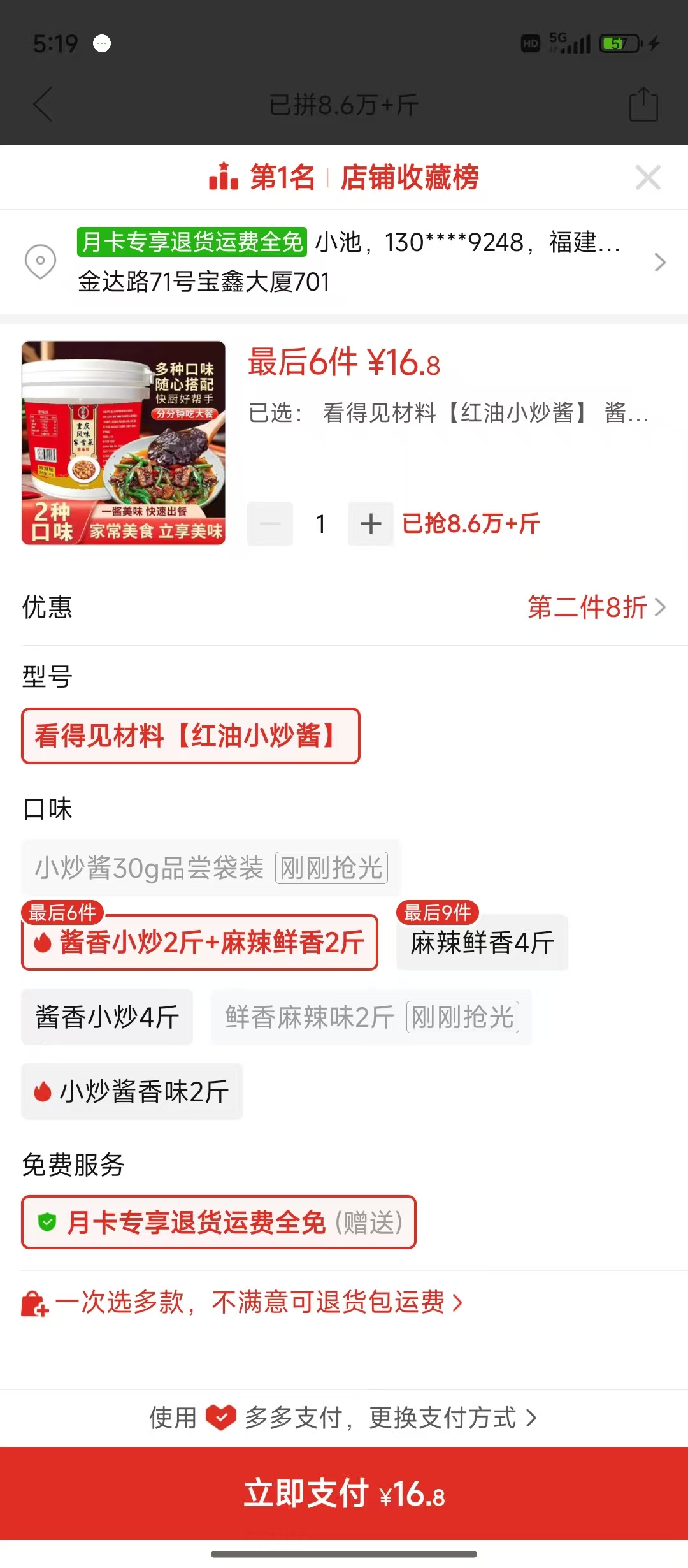 ①小炒醬 2桶2000克(醬香味+辣味) (16.9¥)