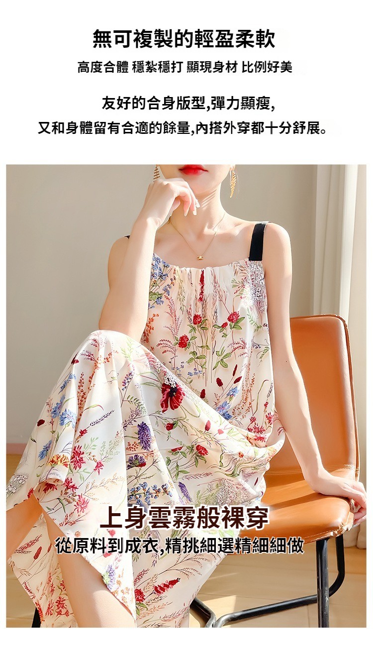 第 1 件 : 2025年夏季新款緞面印花復古吊帶裙多色碎花中長款大尺碼洋裝女