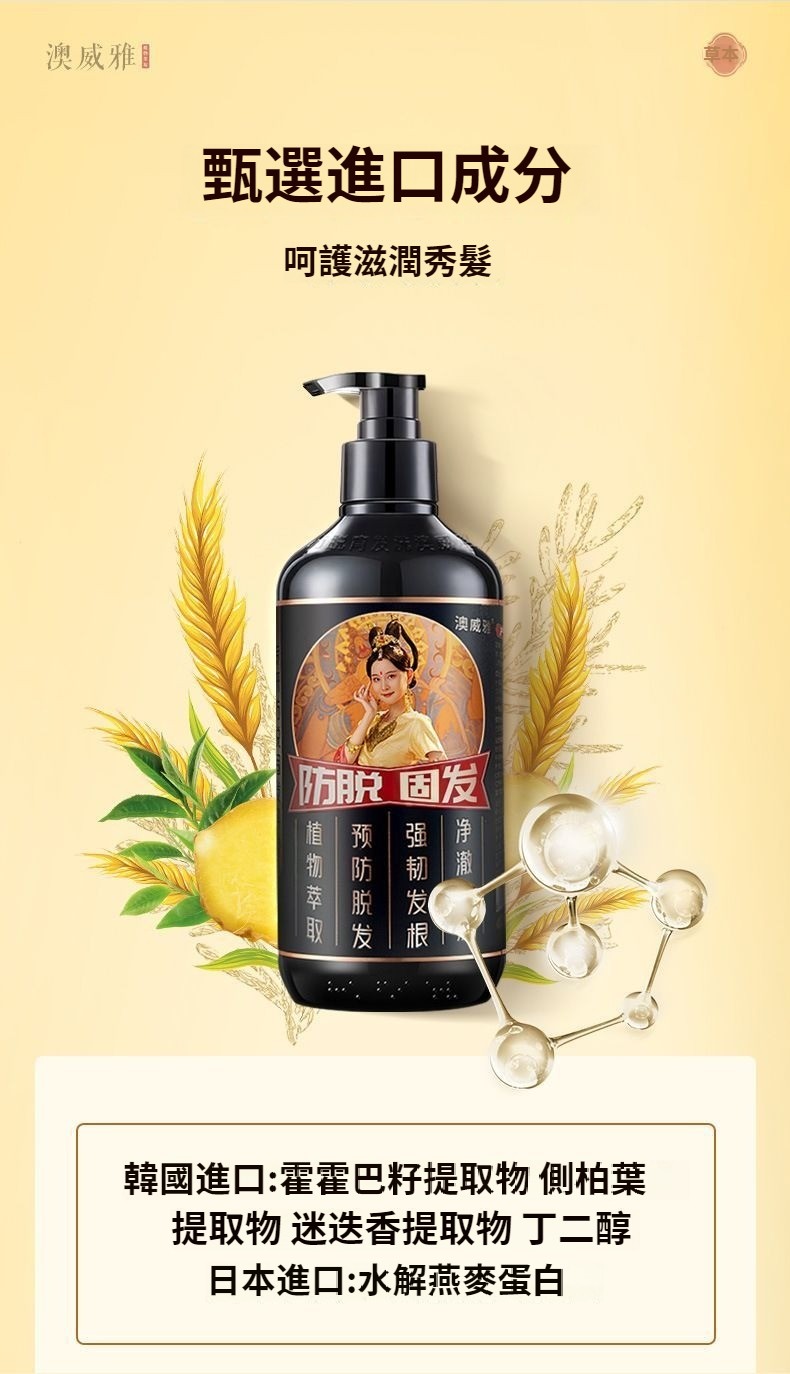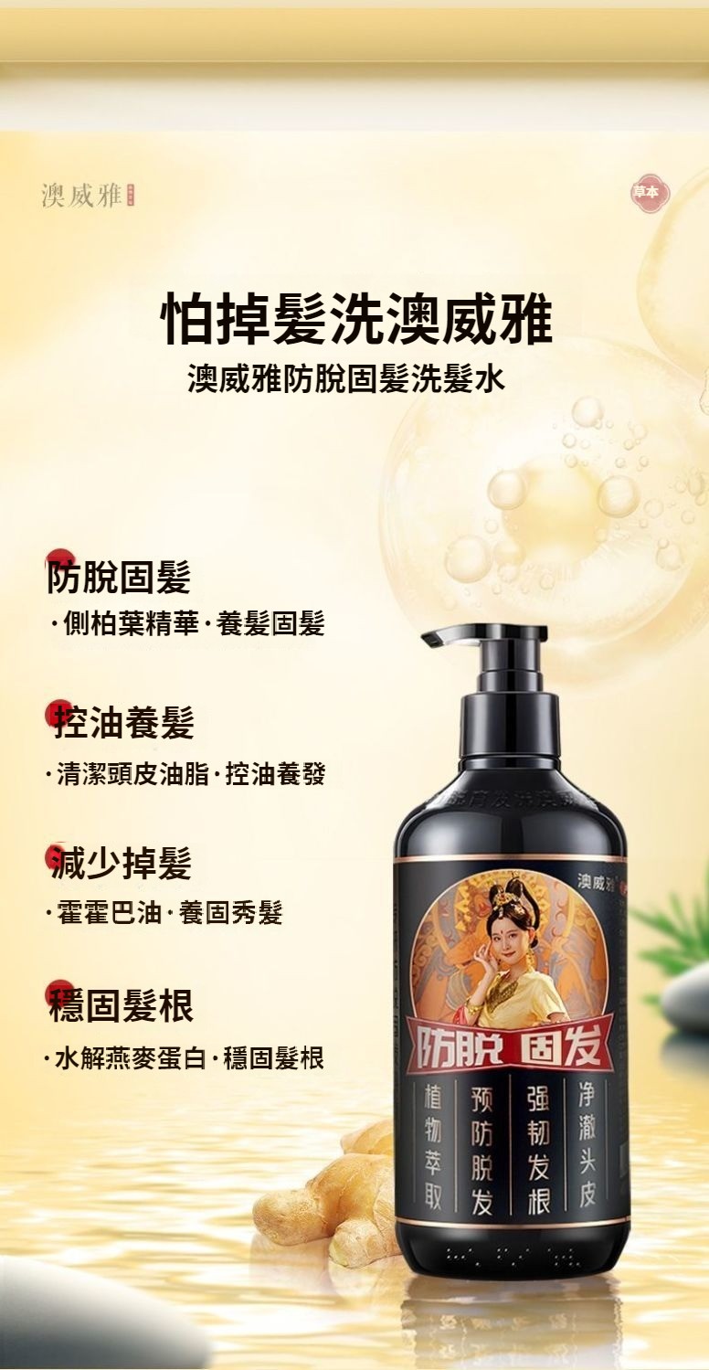澳威雅洗髮精防脫固髮控油蓬鬆止癢去屑滋潤固發生薑洗髮露
